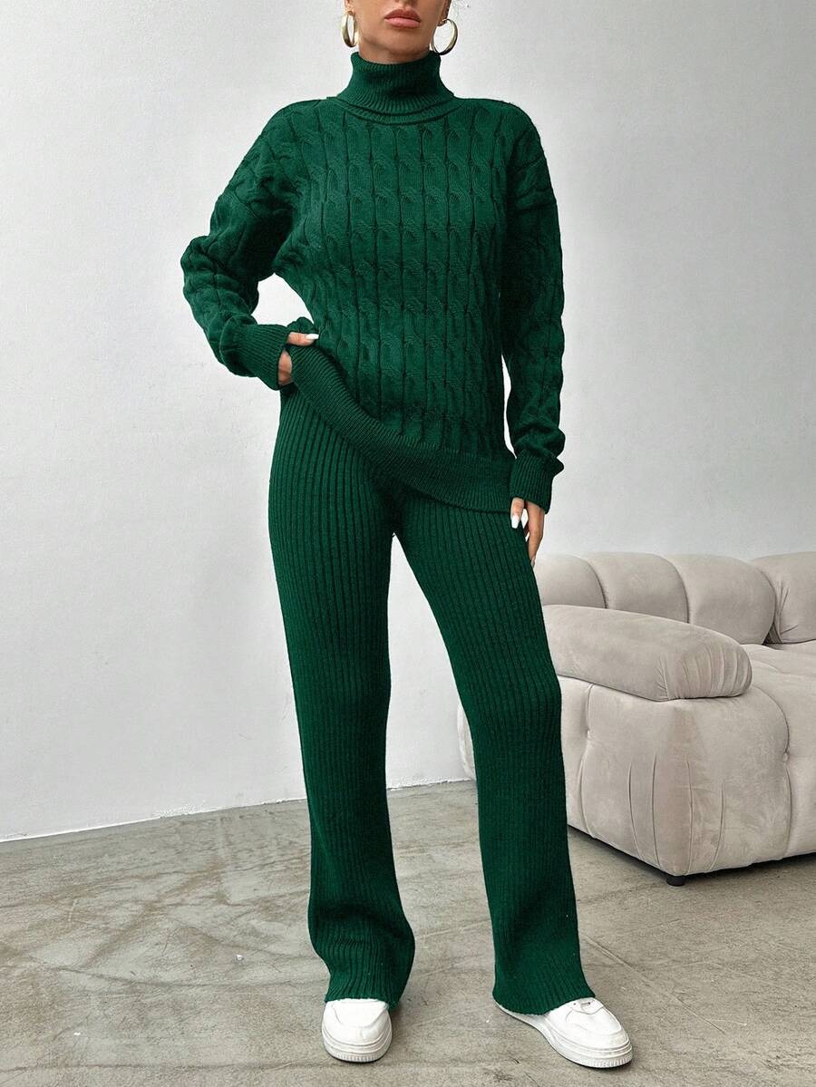 Compleu Tricotat cu Pantalon Adalgiza Verde