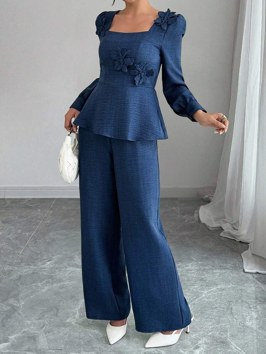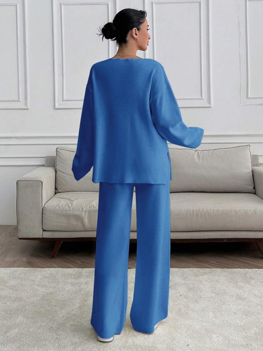 Compleu Tricotat cu Pantalon Amelia Albastru