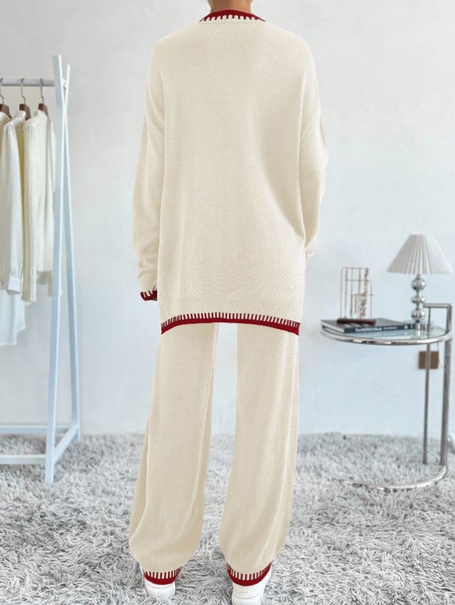 Compleu Tricotat cu Pantalon Anisia Alb