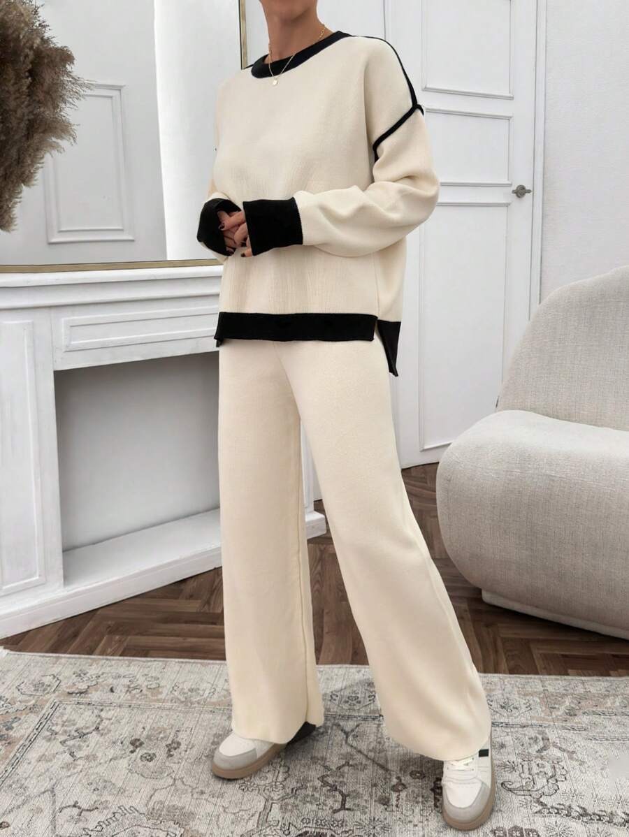 Compleu Tricotat cu Pantalon Ashra Bej – Marimi Mari