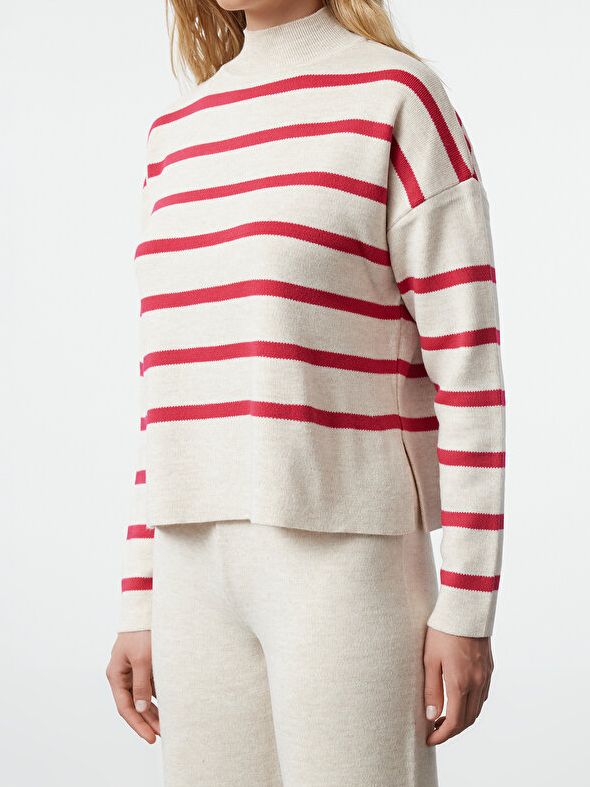 Compleu Tricotat cu Pantalon Calypso Bej cu Dungi Roz