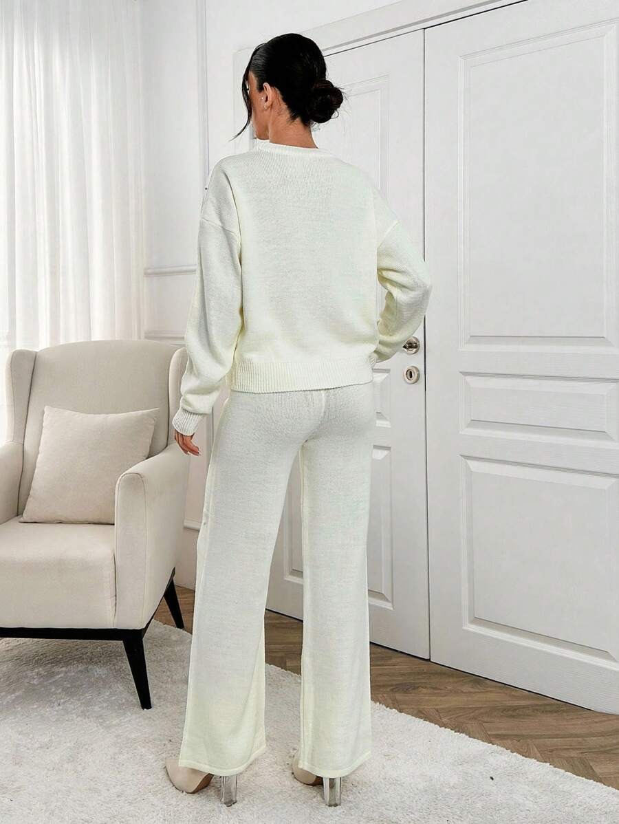 Compleu Tricotat cu Pantalon Elice Alb cu Strasuri