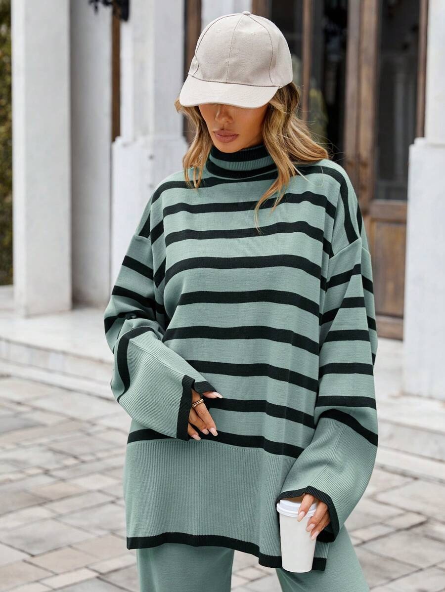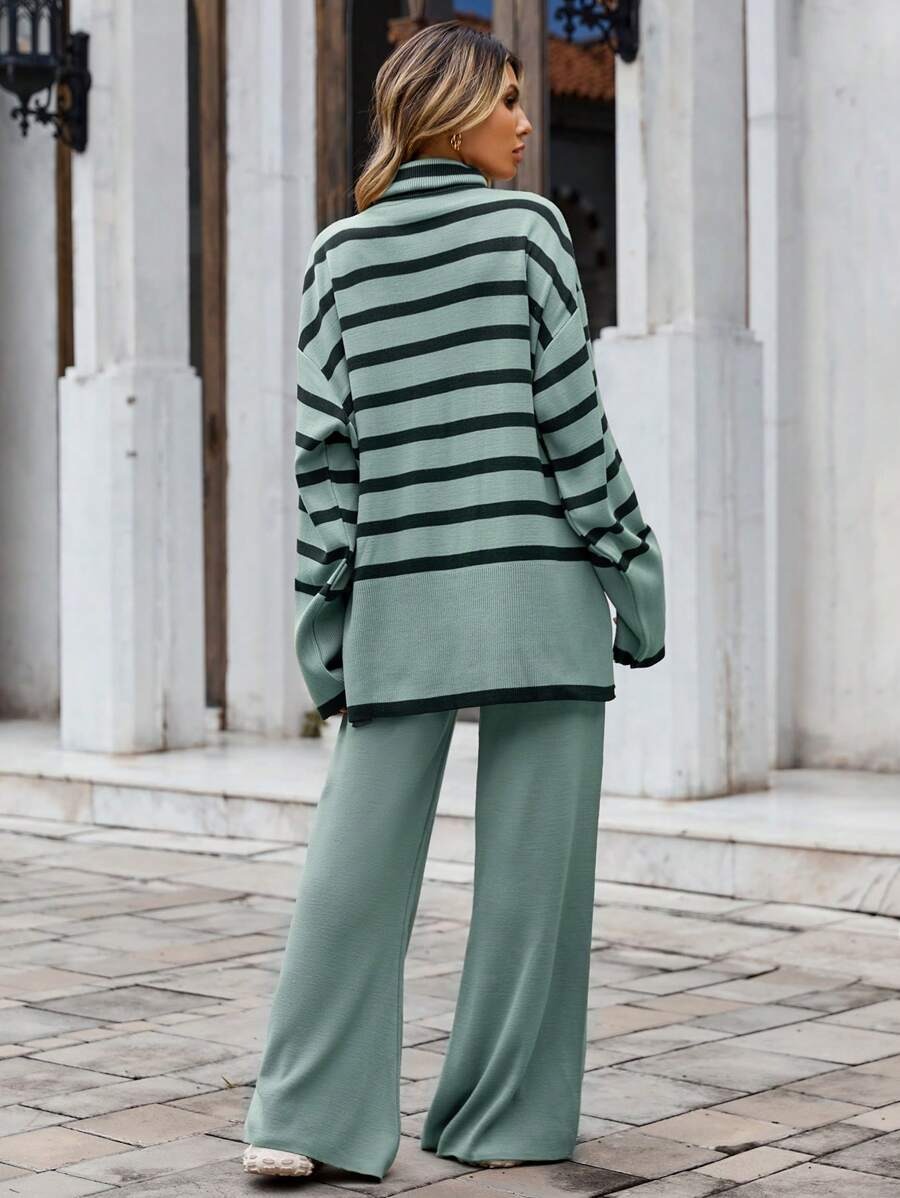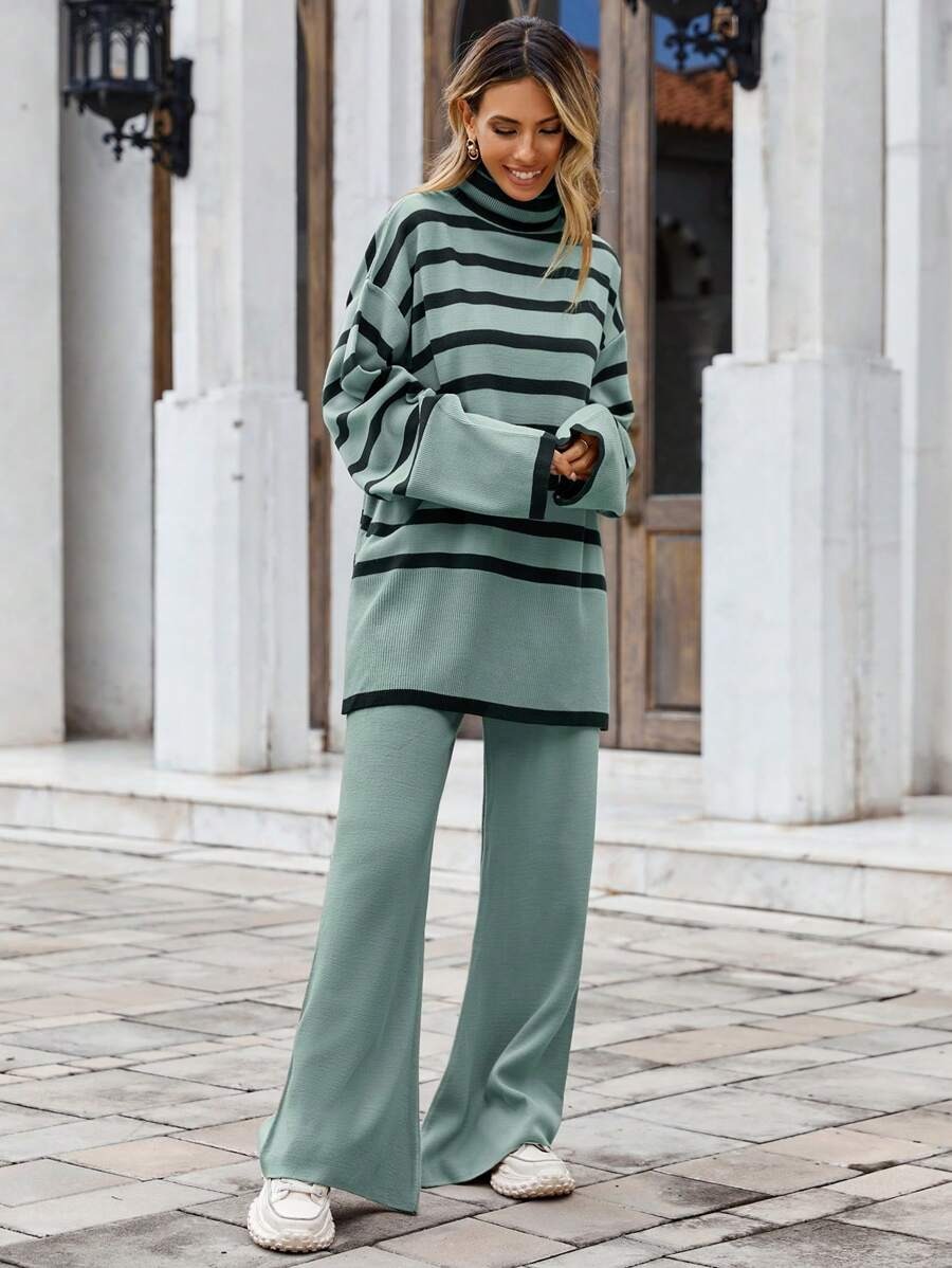 Compleu Tricotat cu Pantalon Lorelai Vernil cu dungi Negre