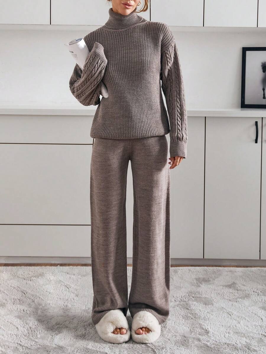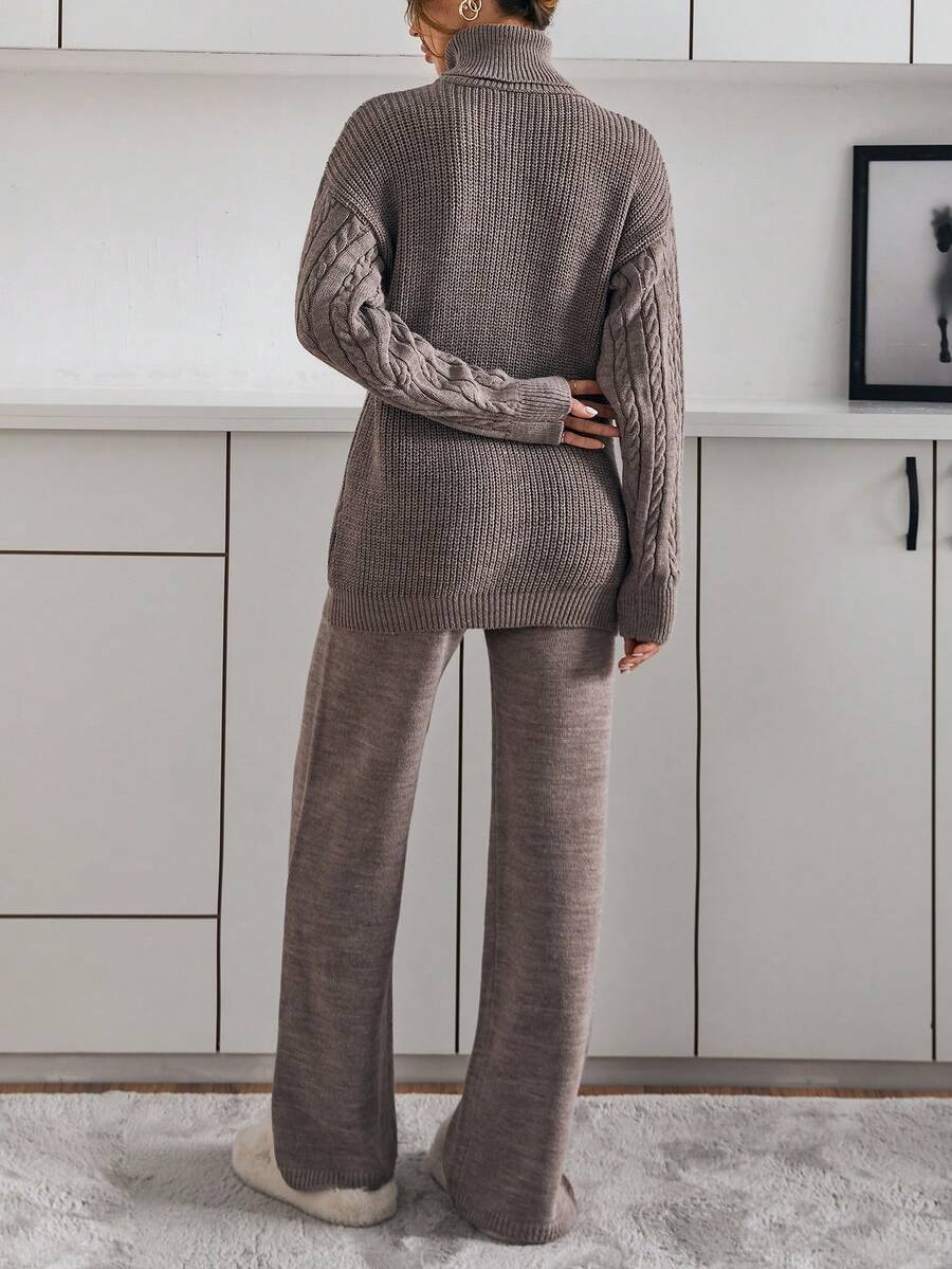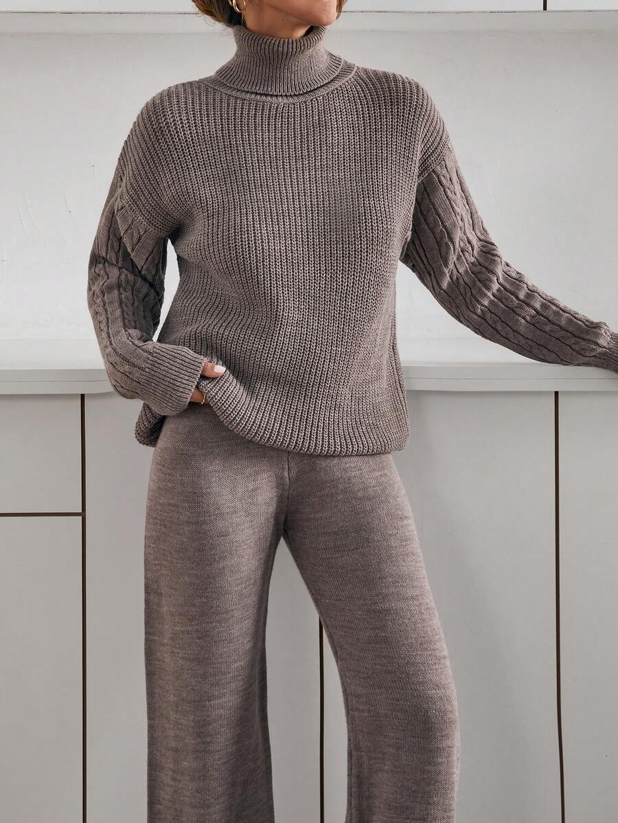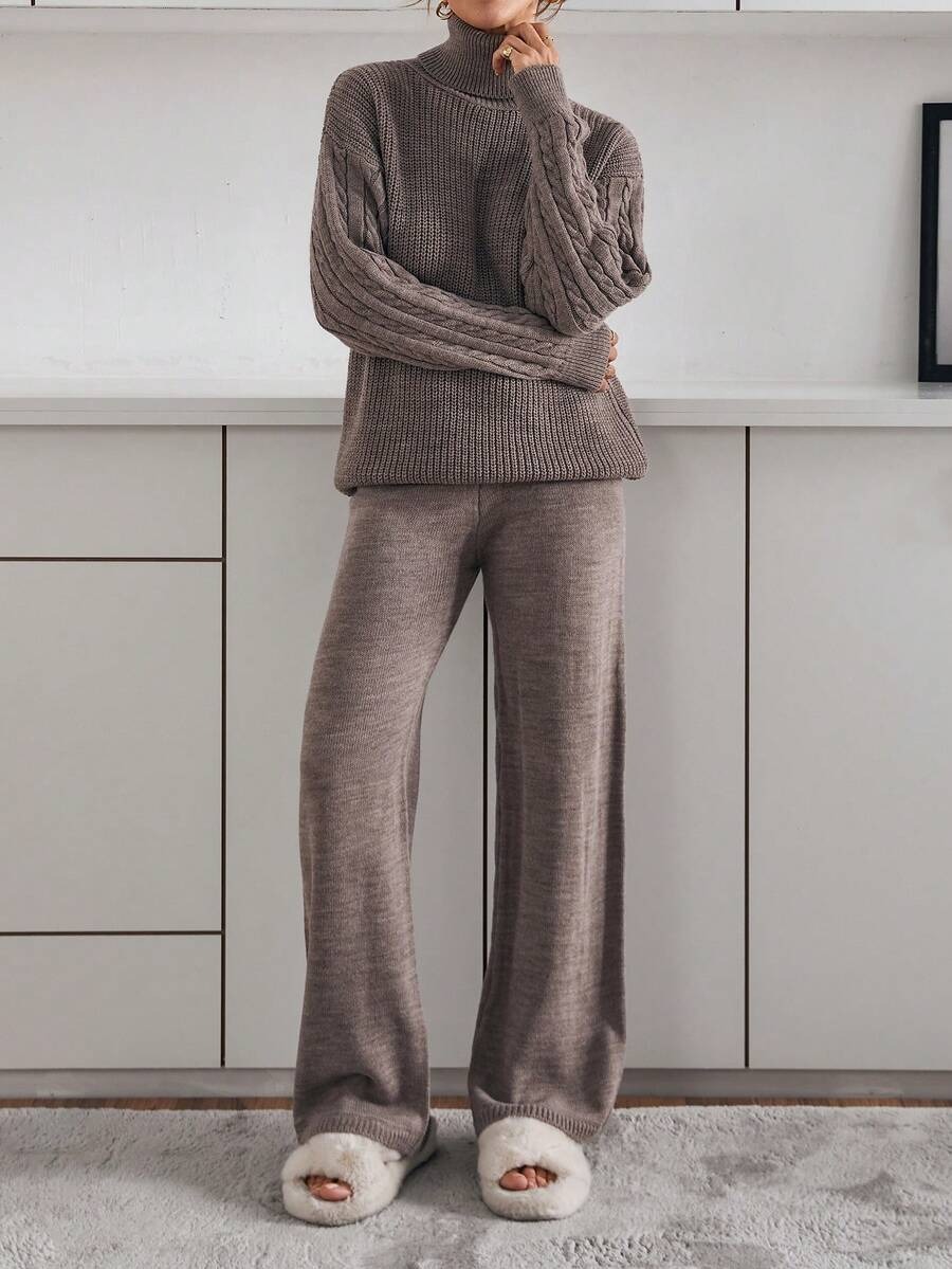 Compleu Tricotat cu Pantalon Maddy Bej Inchis