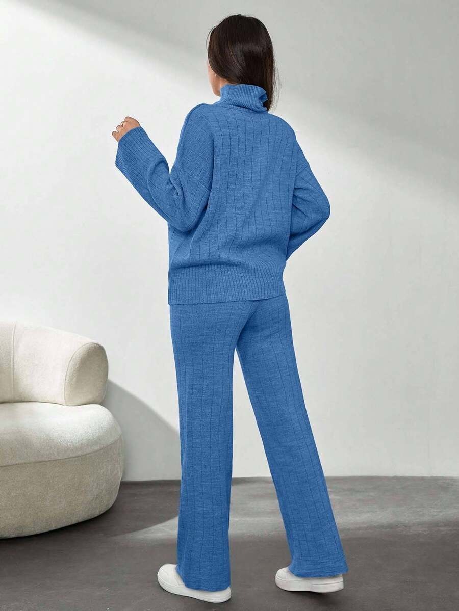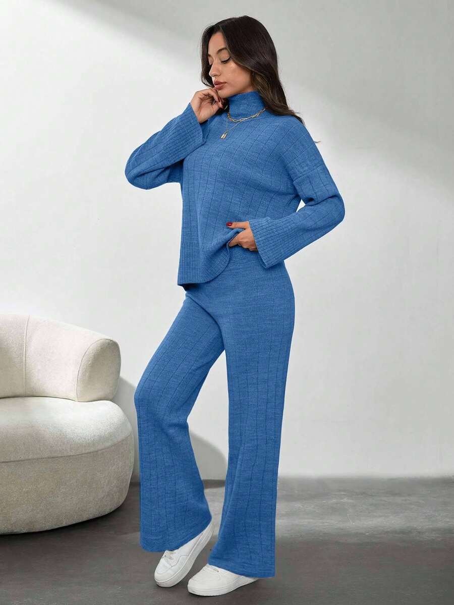 Compleu Tricotat cu Pantalon Petra Albastru
