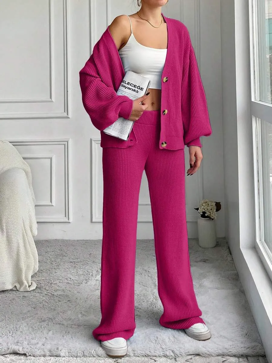Compleu Tricotat cu Pantalon Sandra Roz Inchis