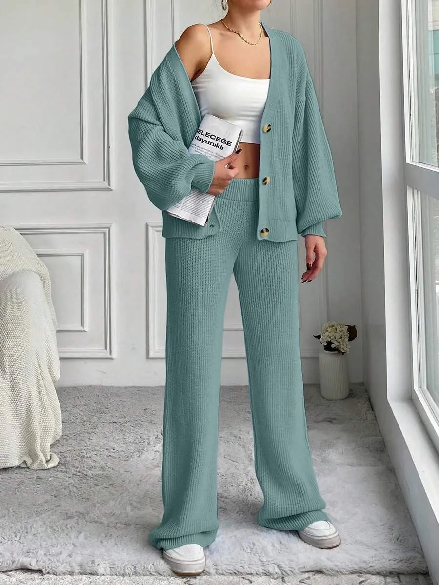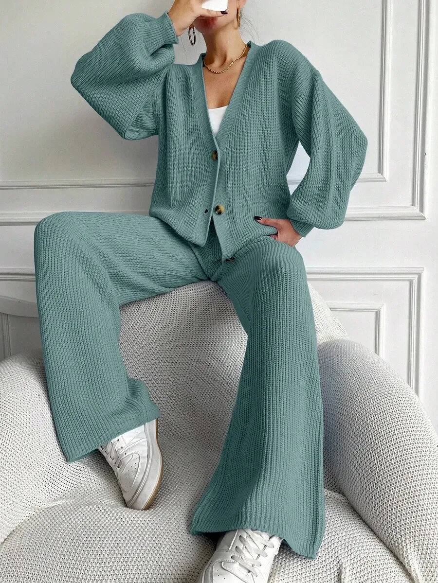 Compleu Tricotat cu Pantalon Sandra Vernil