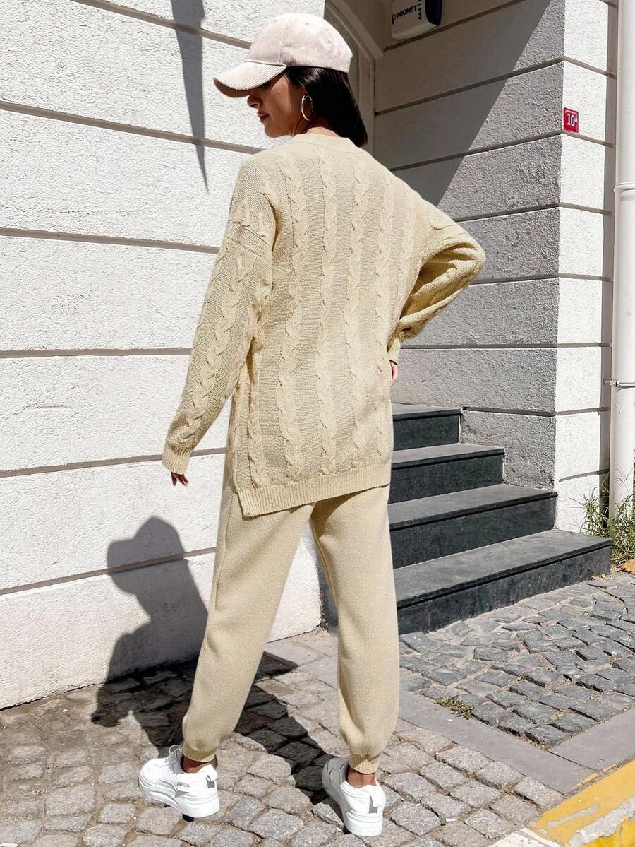 Compleu Tricotat cu Pantalon Suen Bej Deschis