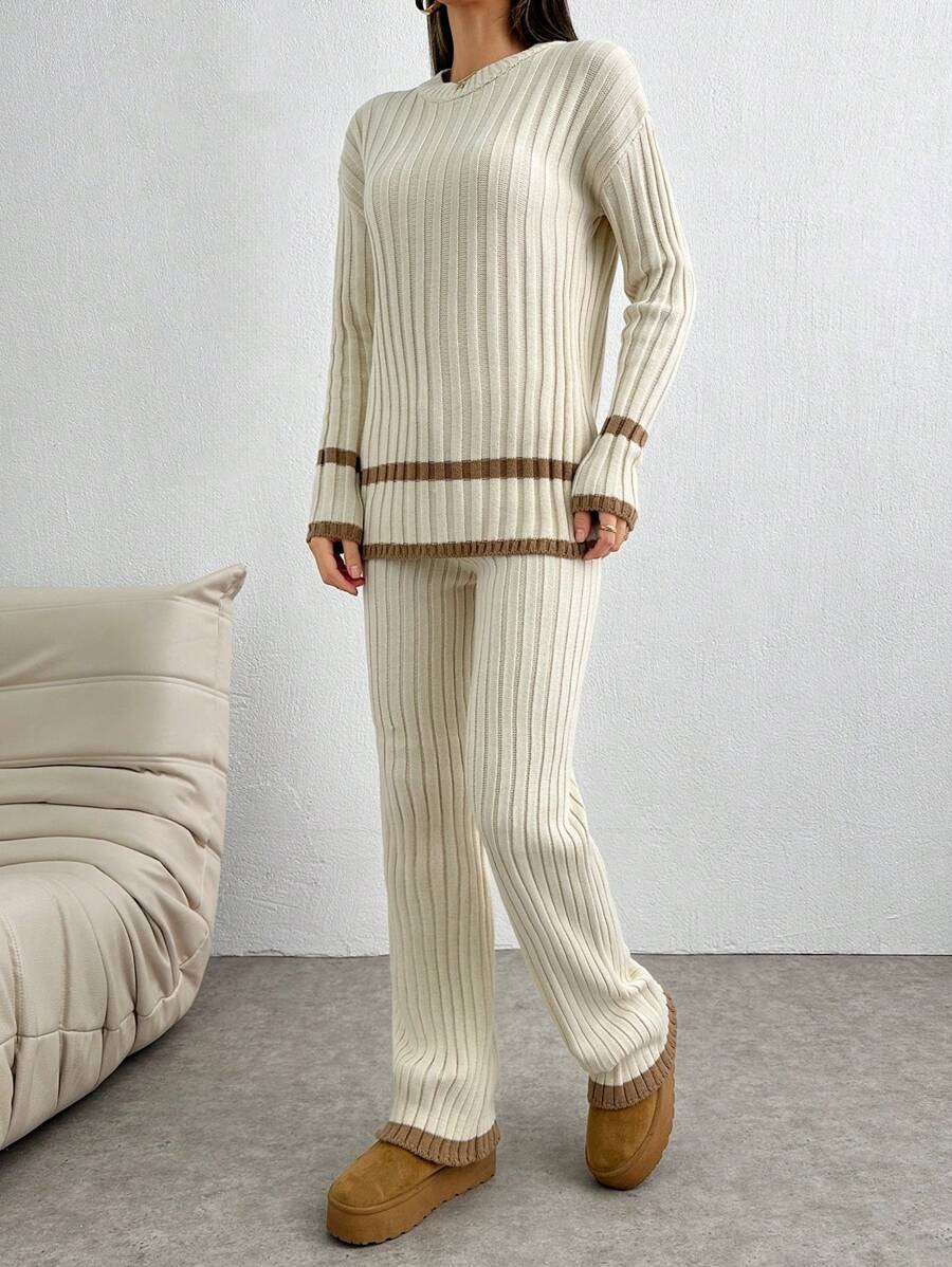 Compleu Tricotat cu Pantalon Vivas Crem