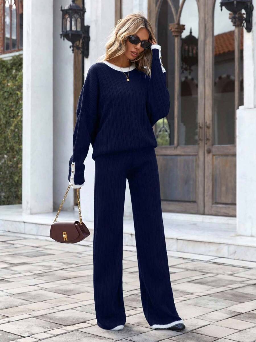 Compleu Tricotat cu Pantalon Zinna Bleumarin