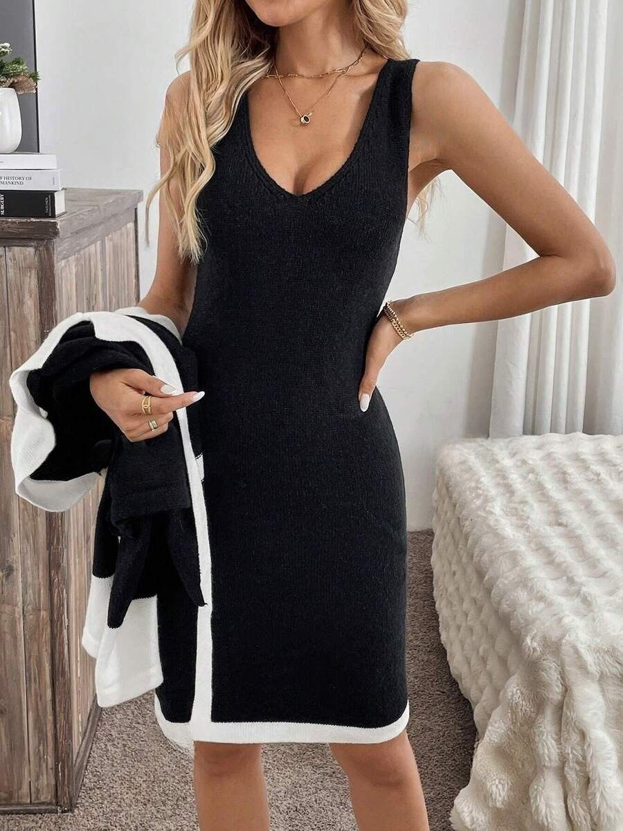 Compleu Tricotat cu Rochie Scurta Alanya Negru