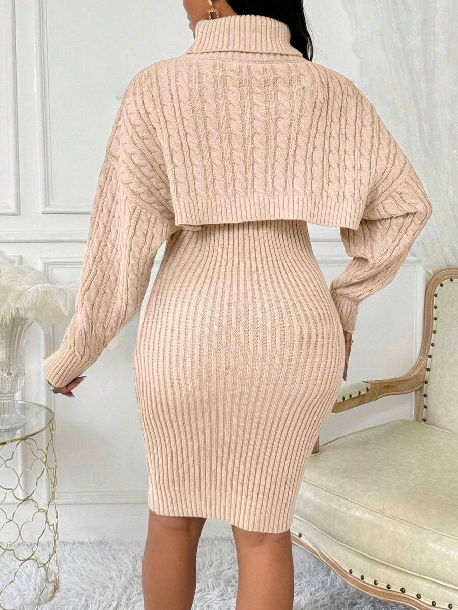Compleu Tricotat cu Rochie Scurta Sorana Crem