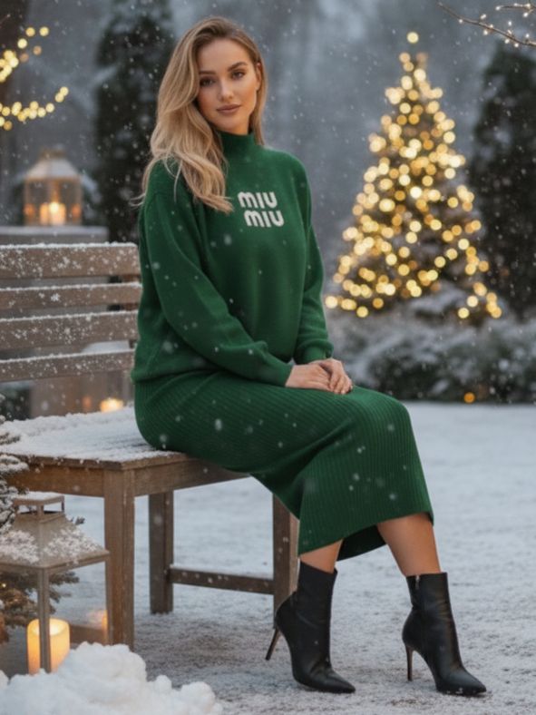 Compleu Tricotat format din Rochie fara Maneci si Bluza Corina Verde