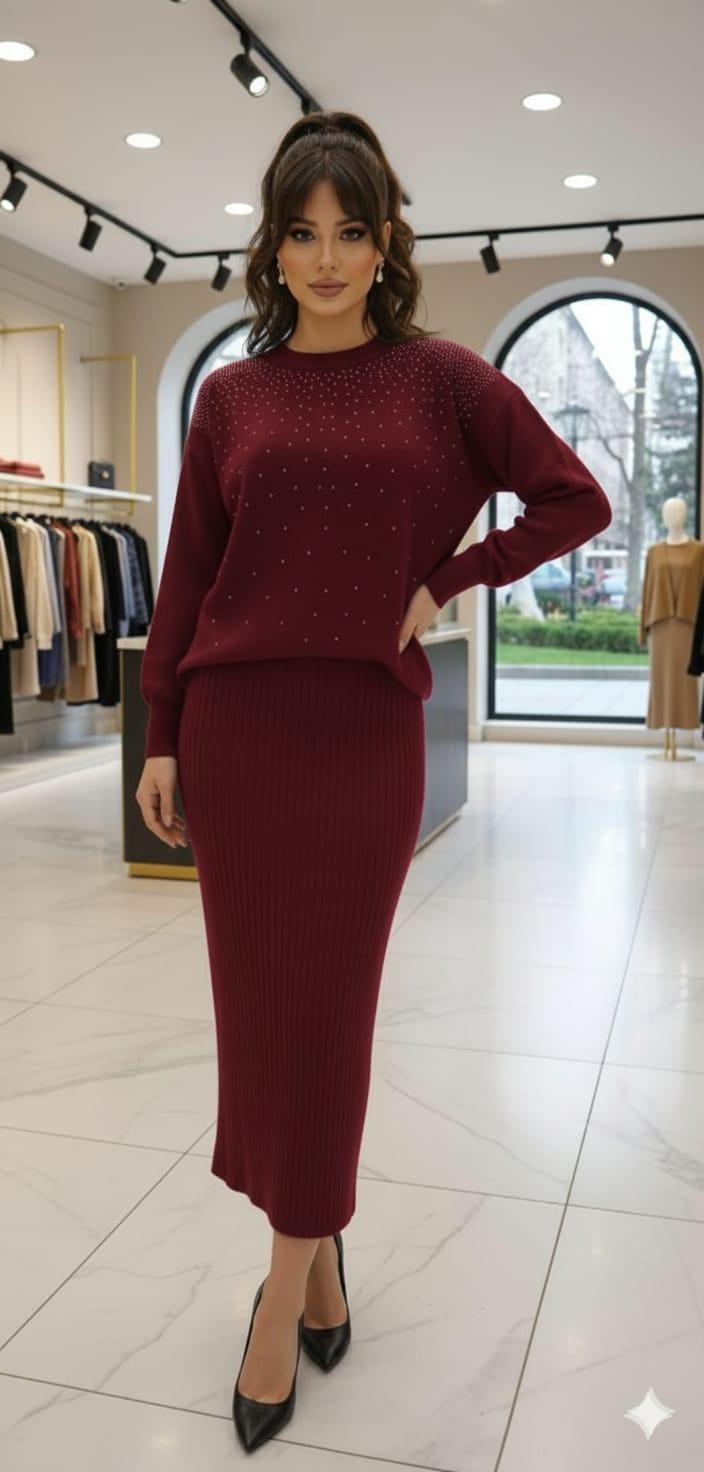 Compleu Tricotat format din Rochie fara Maneci si Bluza Gianna Grena