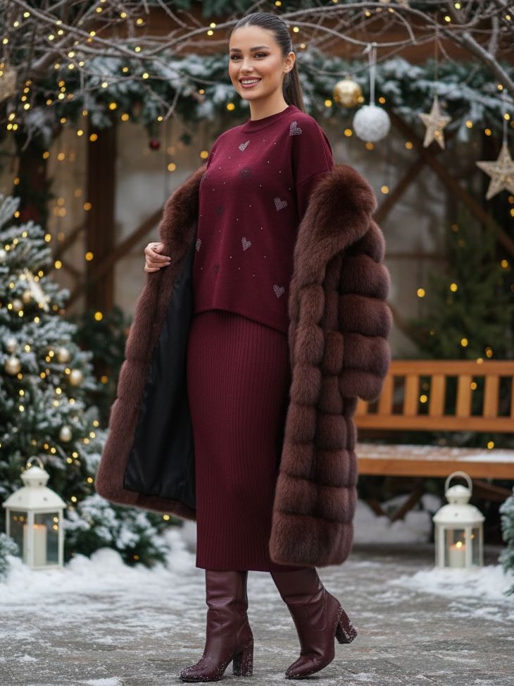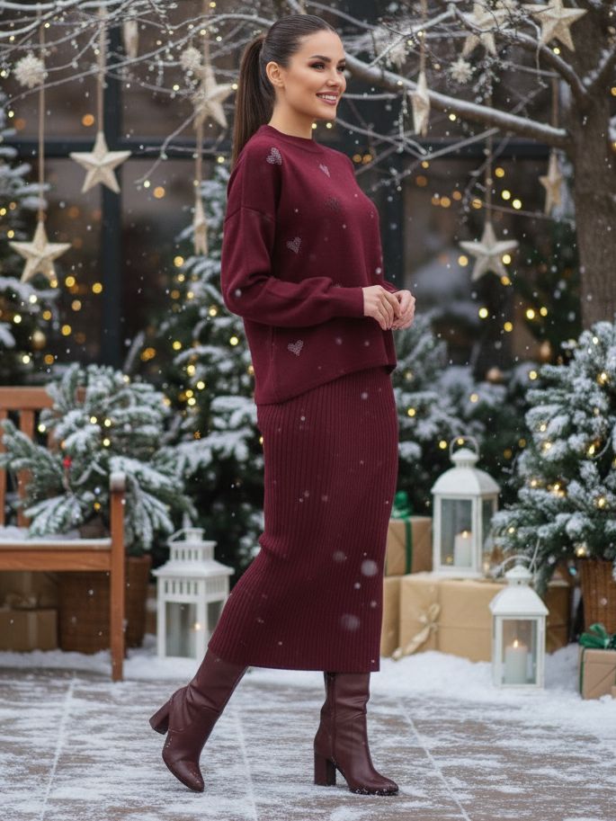 Compleu Tricotat format din Rochie fara Maneci si Bluza Luzmila Grena