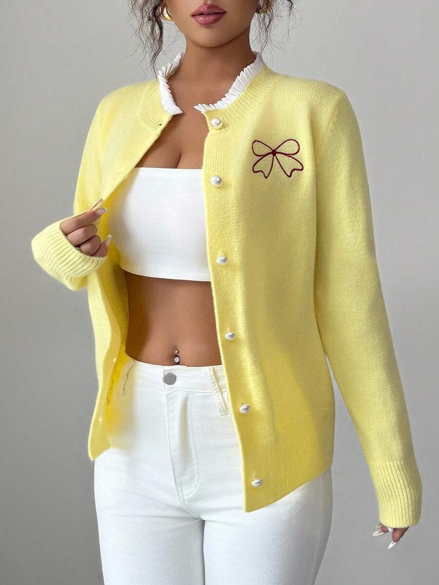 Pulover Tricotat Arsenia Galben cu Nasturi