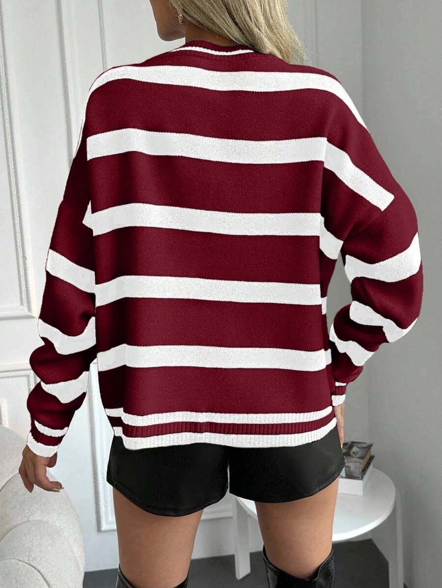 Pulover Tricotat Benned Alb cu Dungi Grena