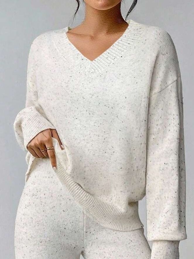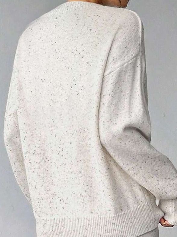 Pulover Tricotat Catherin Alb cu Picatele Negre