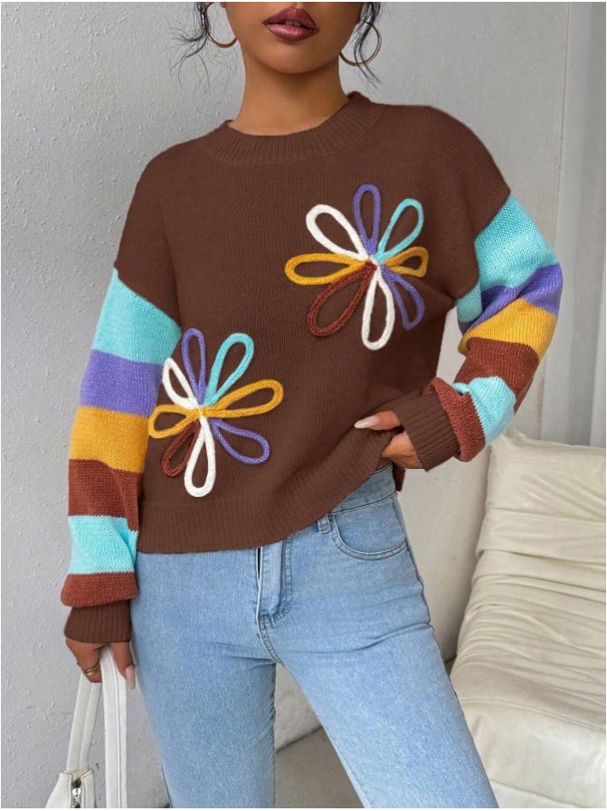 Pulover Tricotat Denisa Maro cu Dungi Multicolore