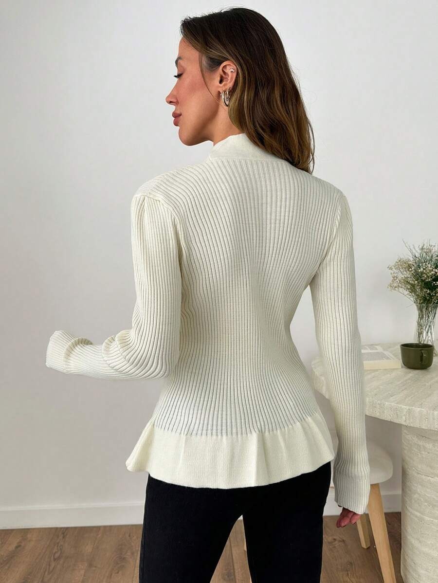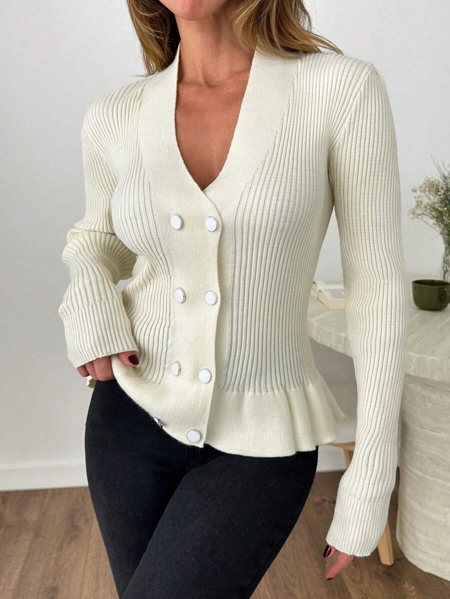 Pulover Tricotat Harly Alb cu Nasturi