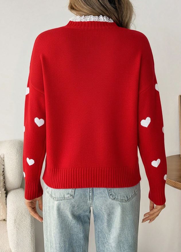 Pulover Tricotat Irina Rosu cu Inimioare Albe (copie)
