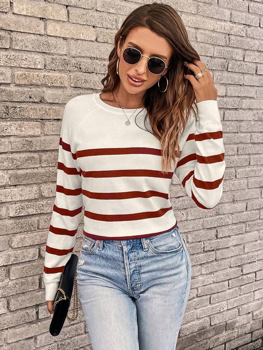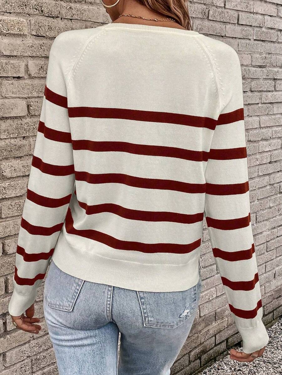 Pulover Tricotat Kayla Alb cu Dungi Grena