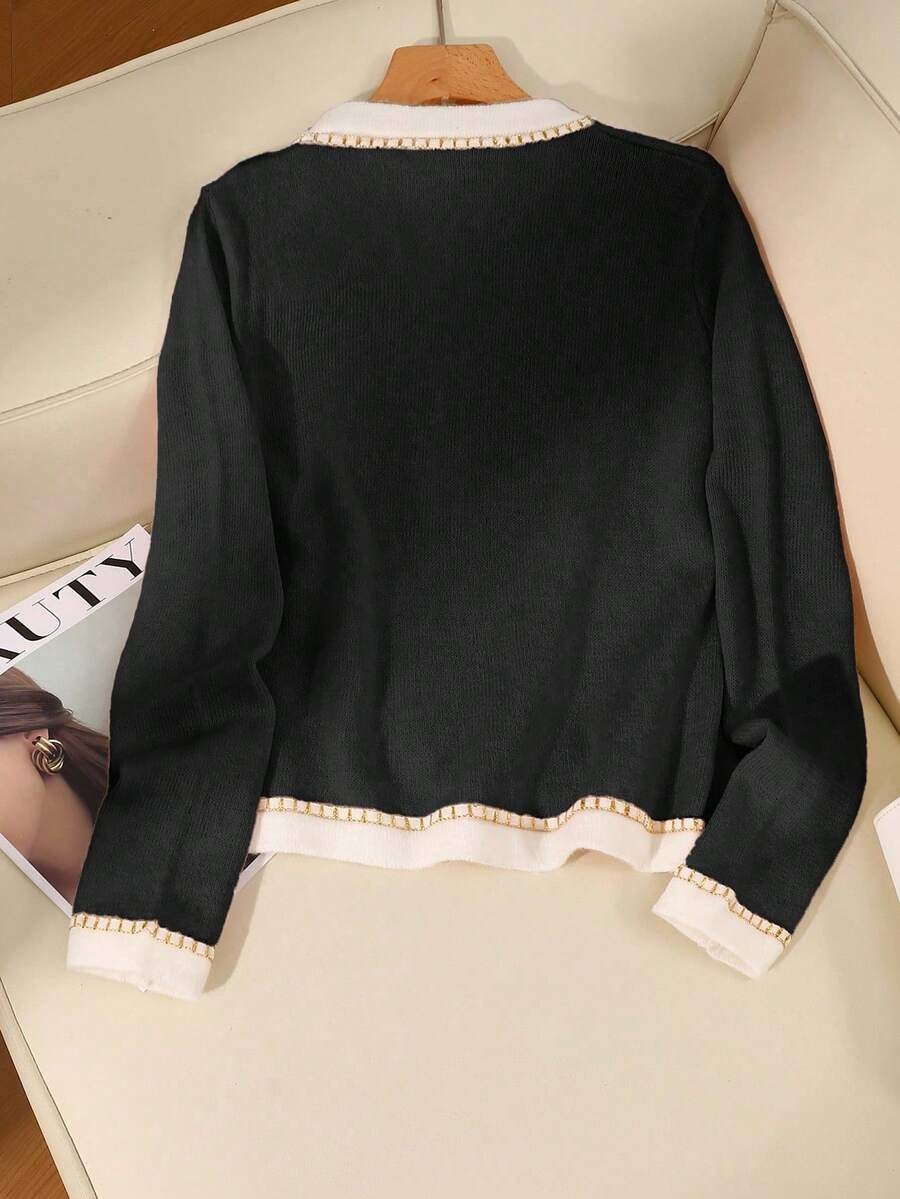 Pulover Tricotat Narcisa Negru cu Nasturi