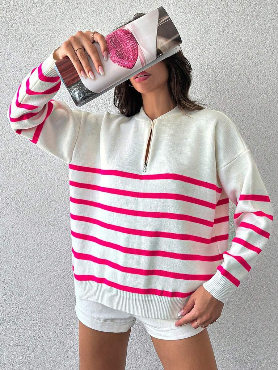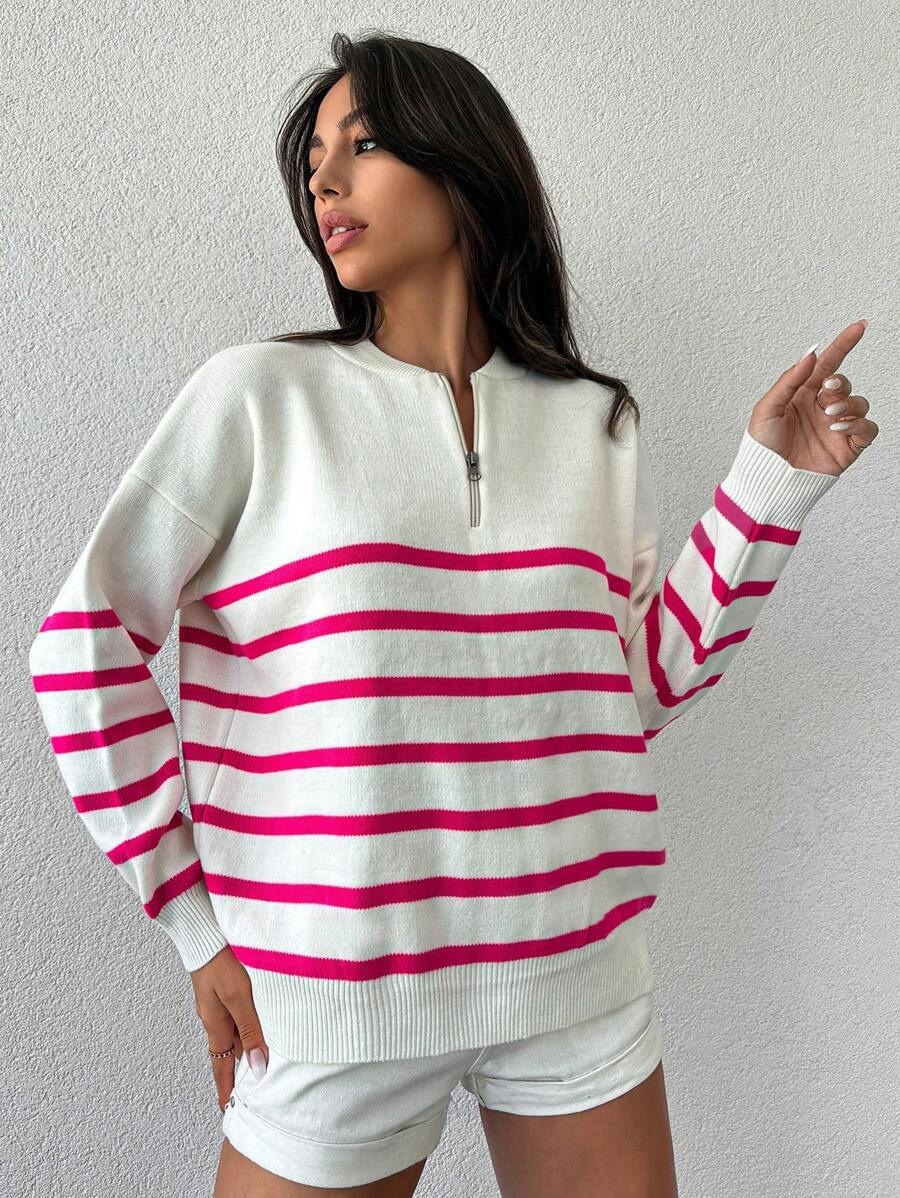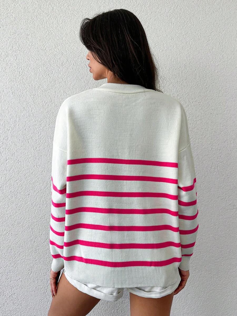 Pulover Tricotat Seya Alb cu Dungi Roz