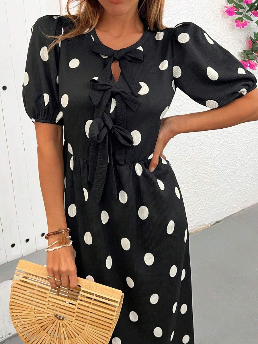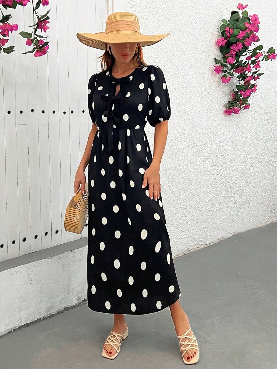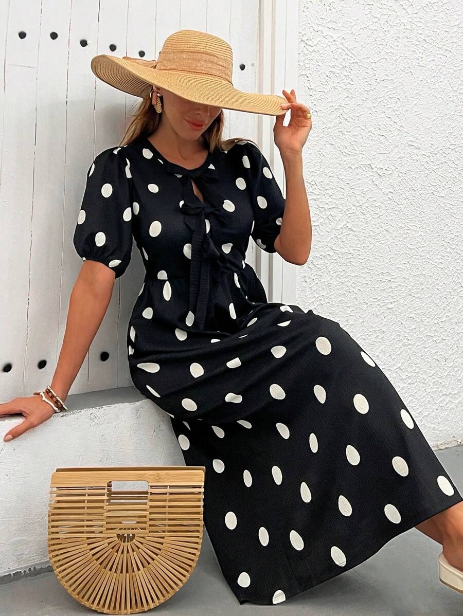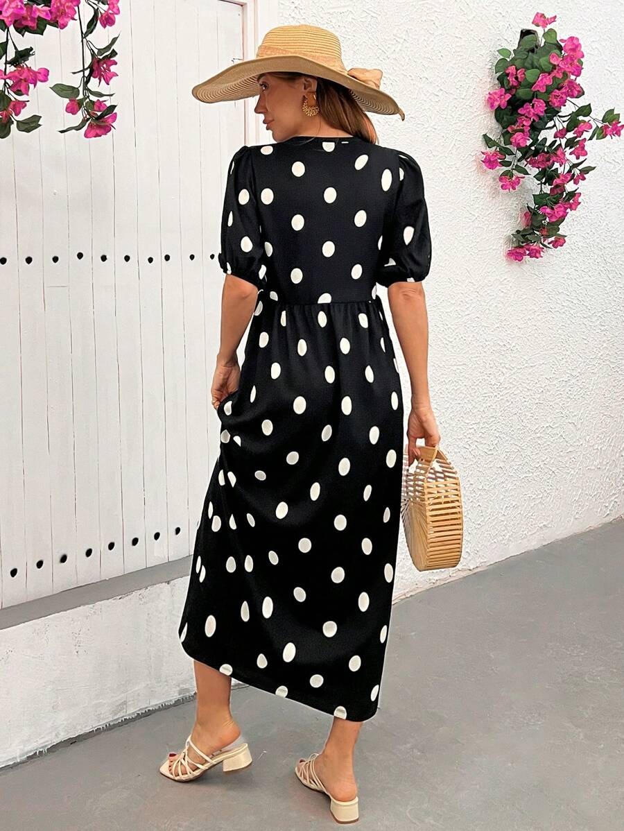 Rochie Lunga Alencia Neagra cu Buline Albe