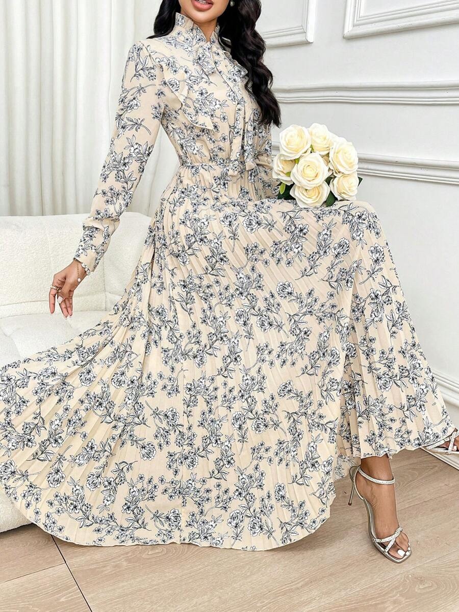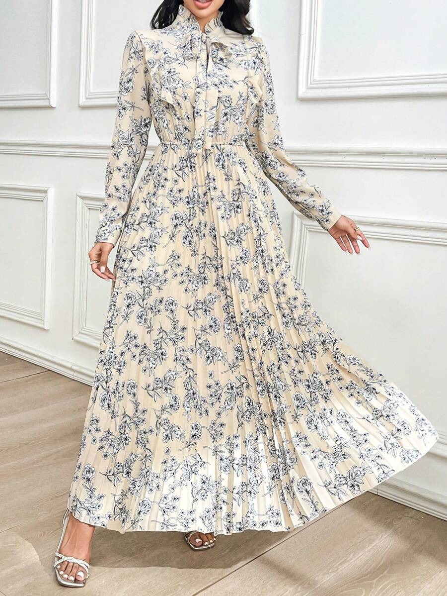 Rochie Lunga Asena Crem cu Print Floral Alb