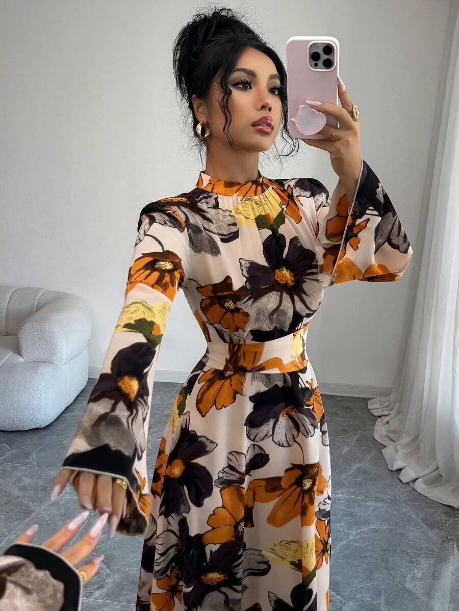 Rochie Lunga Danielle Crem Inflorata