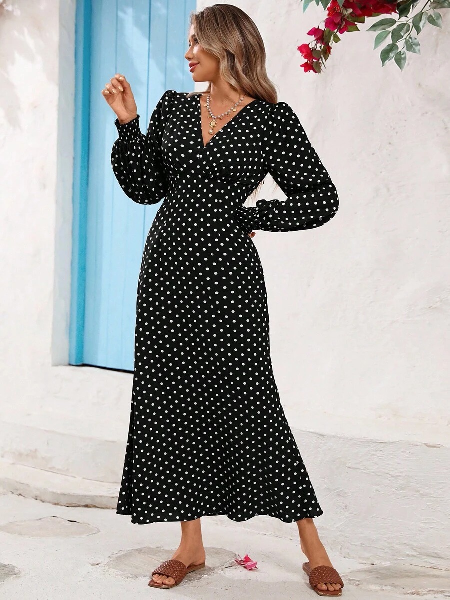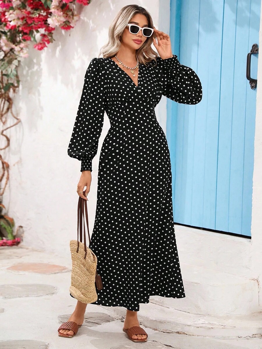Rochie Lunga Diandra Neagra cu Buline Albe