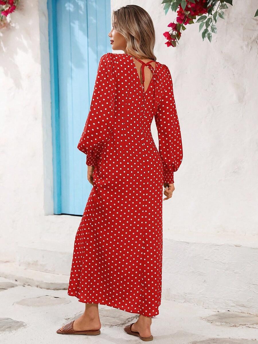 Rochie Lunga Diandra Rosie cu Buline Albe