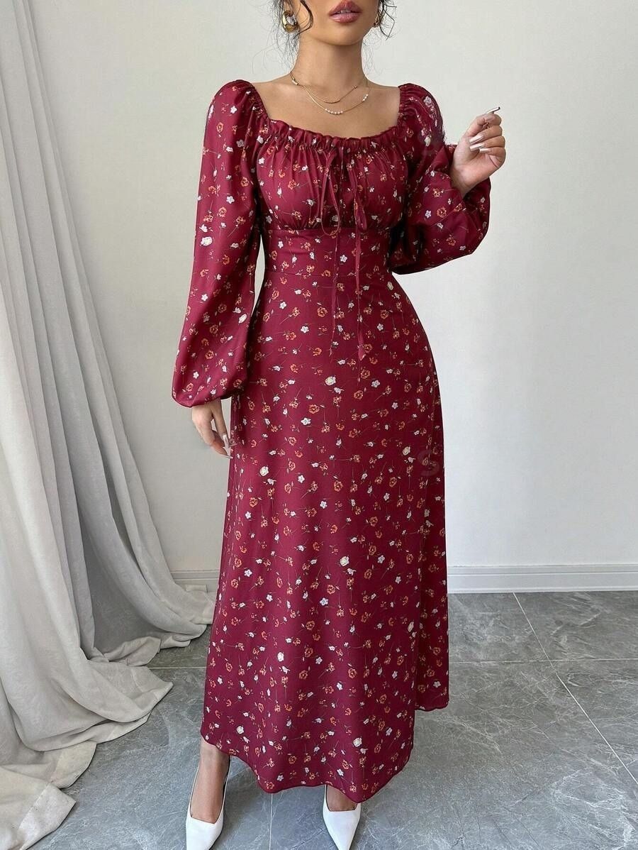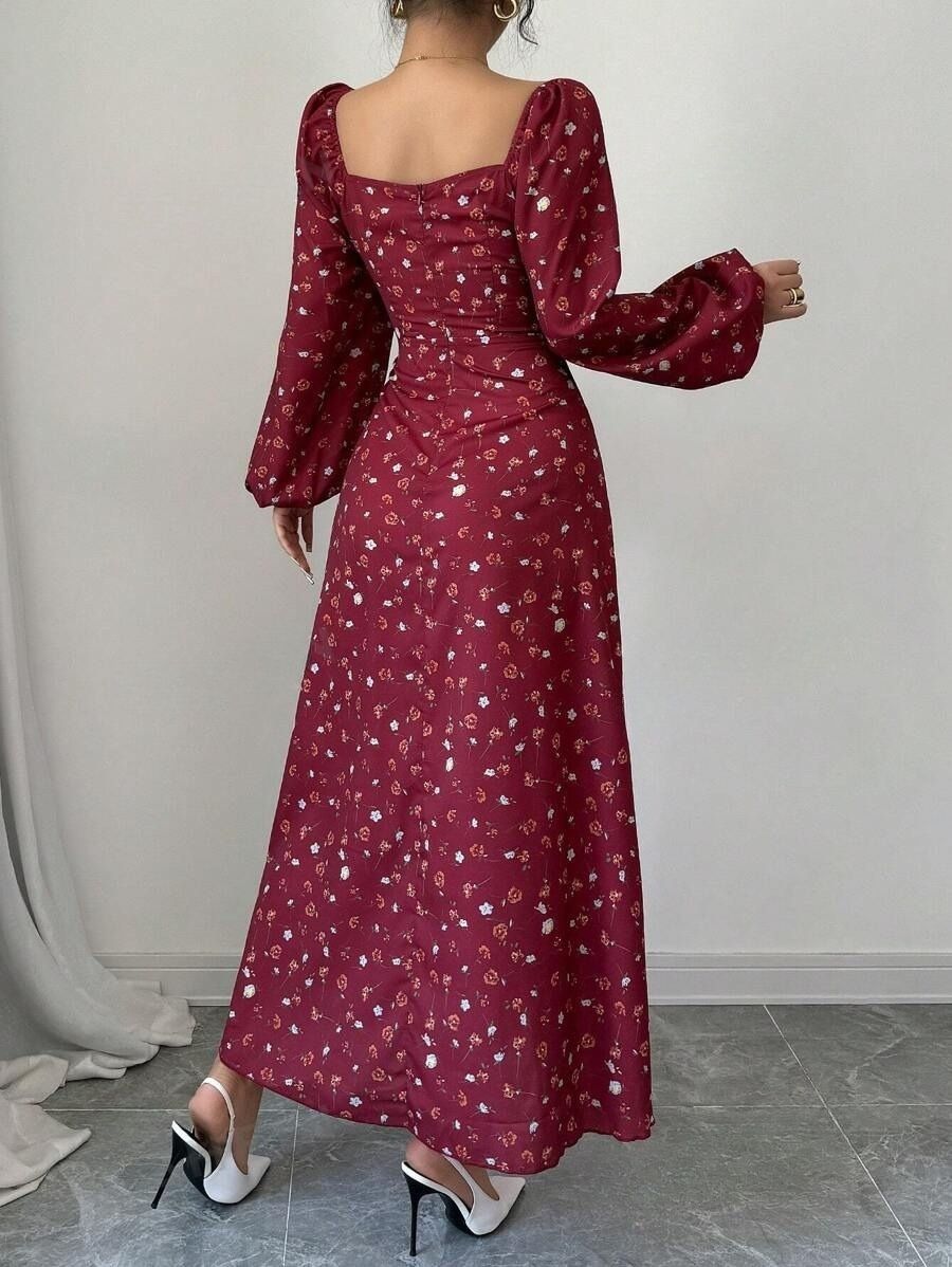 Rochie Lunga Helena Grena Inflorata