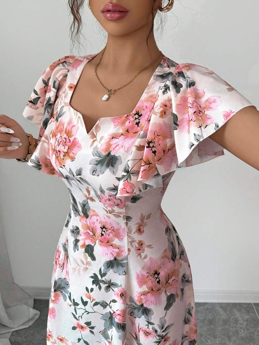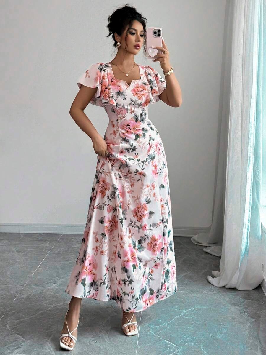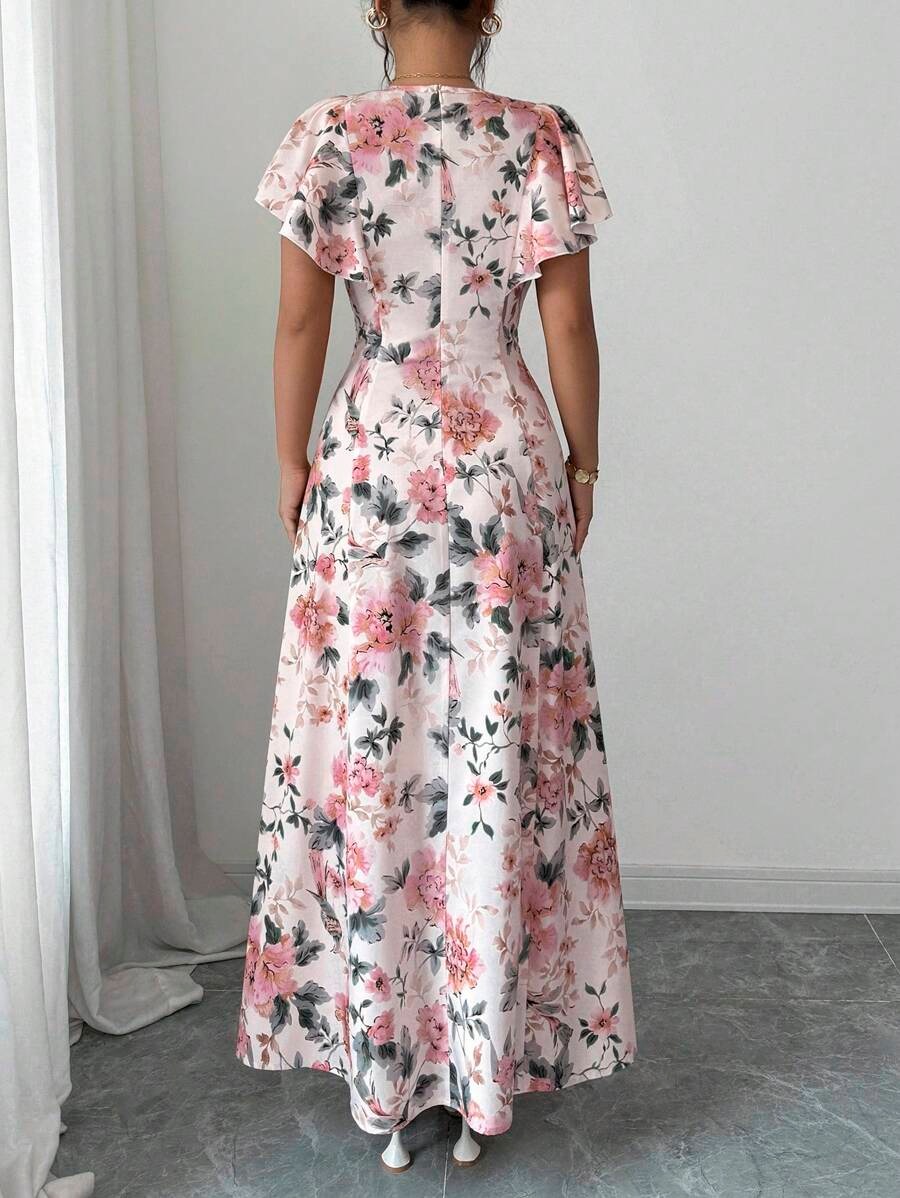 Rochie Lunga Hristina Alba cu Print Floral Roz