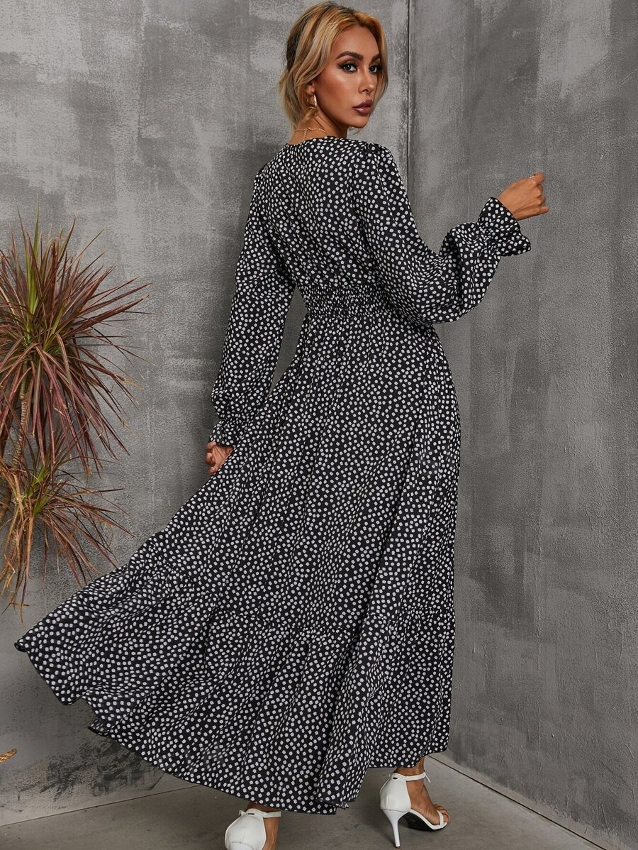 Rochie Lunga Ignacia Neagra cu Print Floral Alb