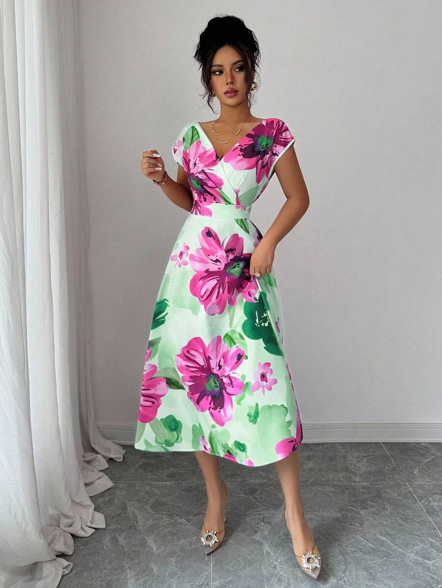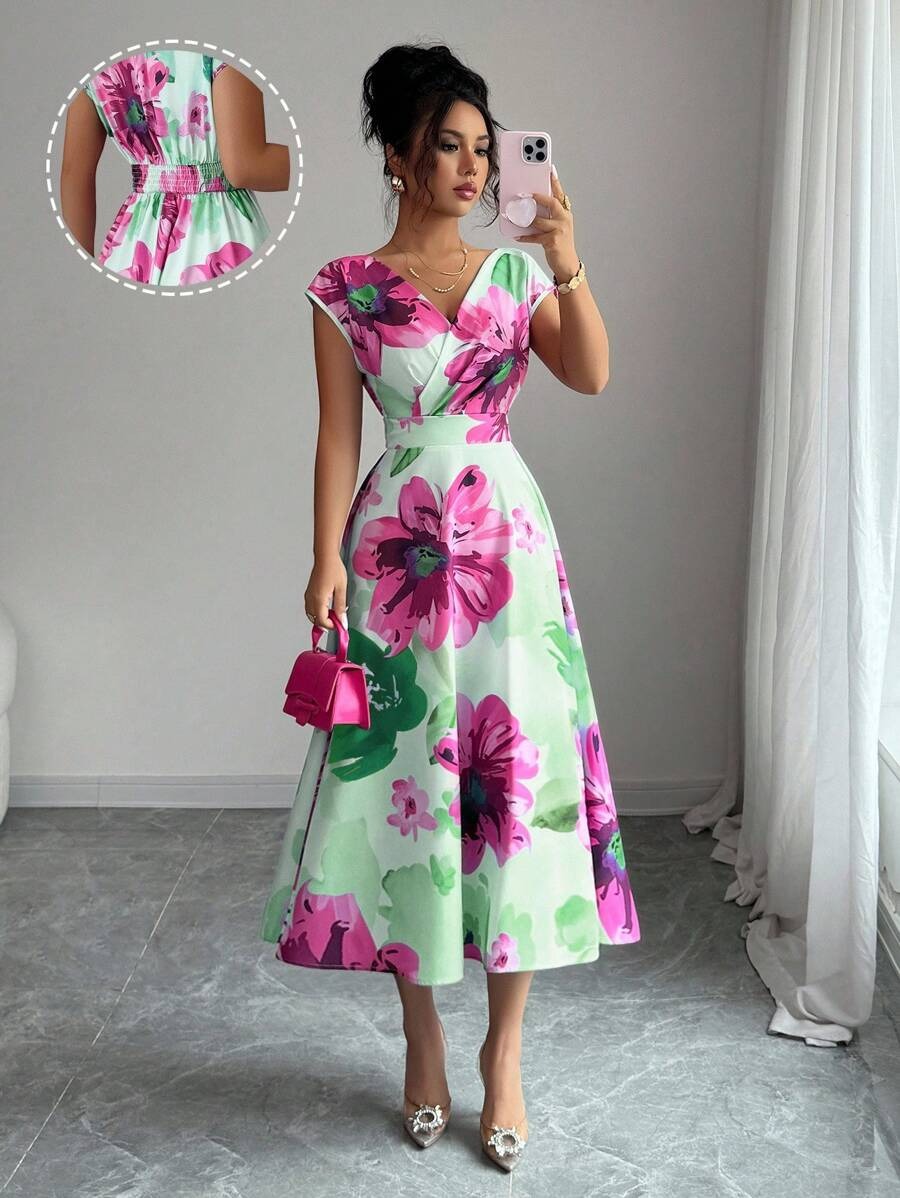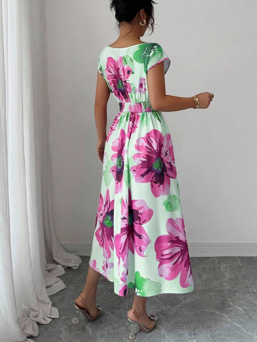 Rochie Lunga Johanne Vernil cu Print Floral Roz