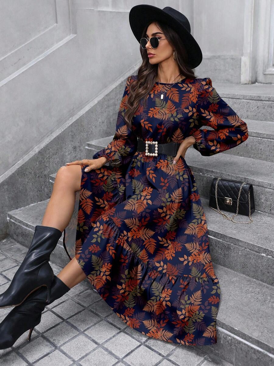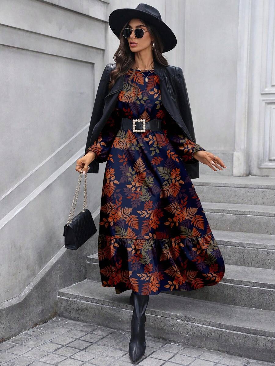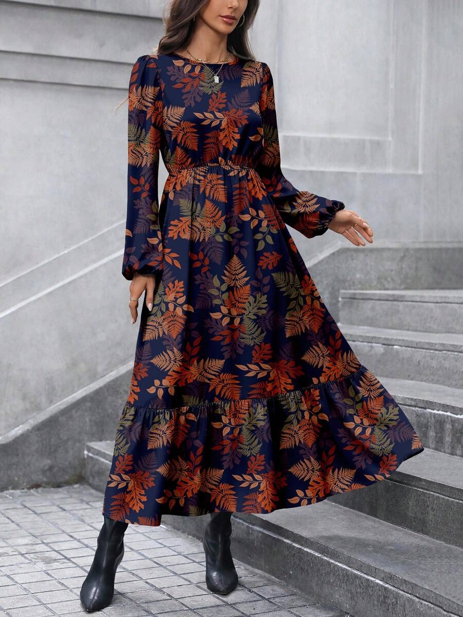 Rochie Lunga Klara Bleumarin Inflorata