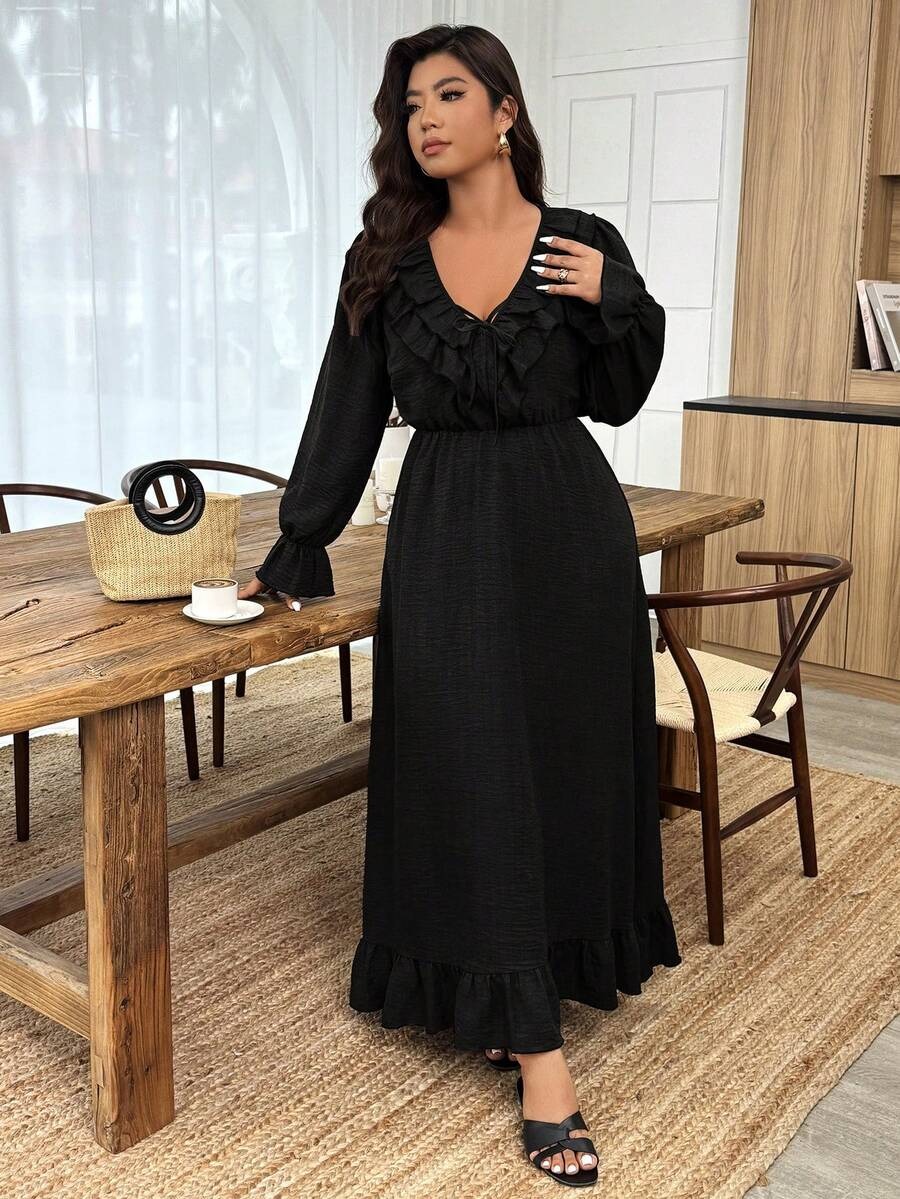 Rochie Lunga Larisa Neagra – Marimi Mari