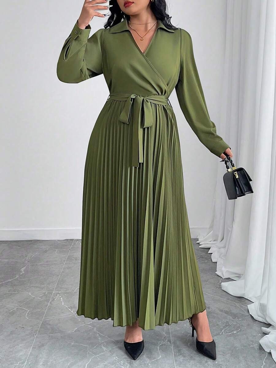 Rochie Lunga Liana Kaki Plisata – Marimi Mari