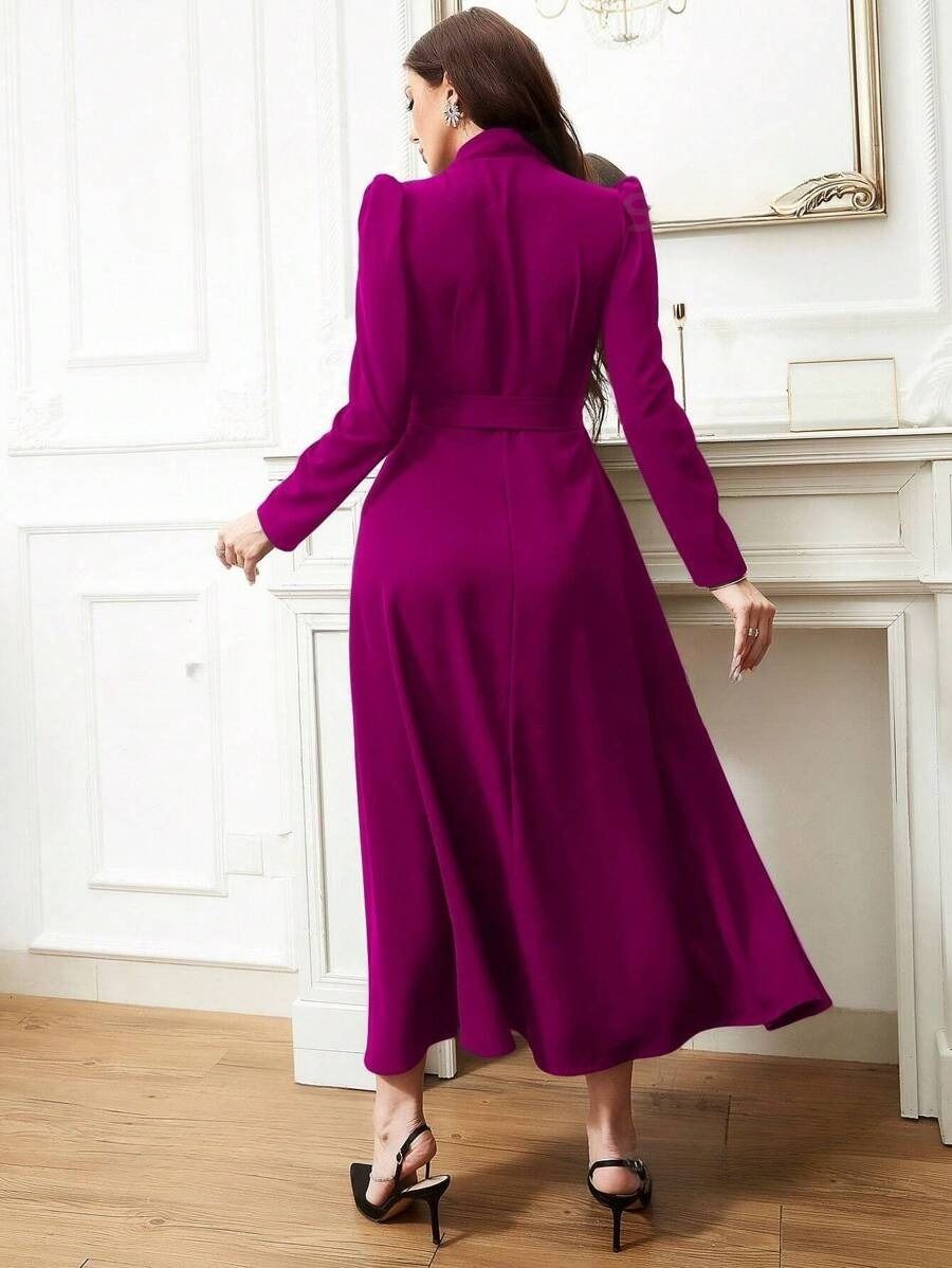 Rochia „ Manuela ” aduce o eleganță relaxată și feminină în orice zi, fiind alegerea ideală pentru plimbări în oraș sau evenimente casual-chic. Confecționată dintr-un material în nuanță de violet, rochia are o croială cu talia accentuată cu un cordon ce creează o siluetă romantică și lejeră.
