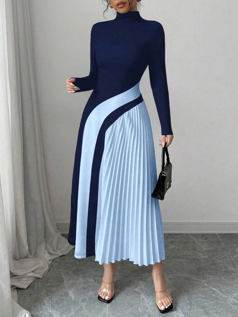 Rochie Lunga Miriam Bleumarin cu Bleu Plisata