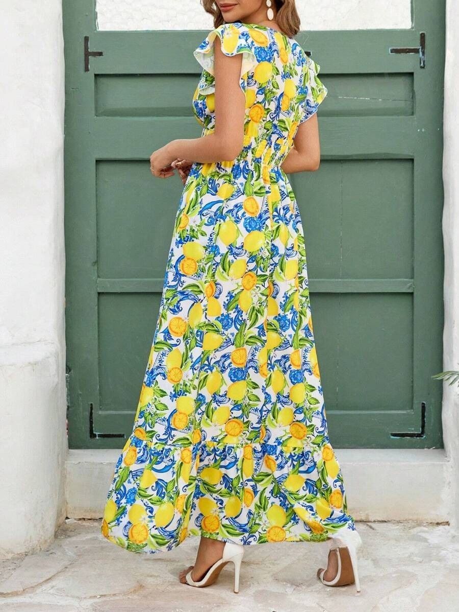 Rochie Lunga Natalia Alba cu Print Lamai