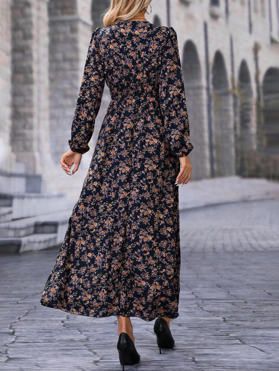 Rochie Lunga Palmer Bleumarin cu Print Floral Maro