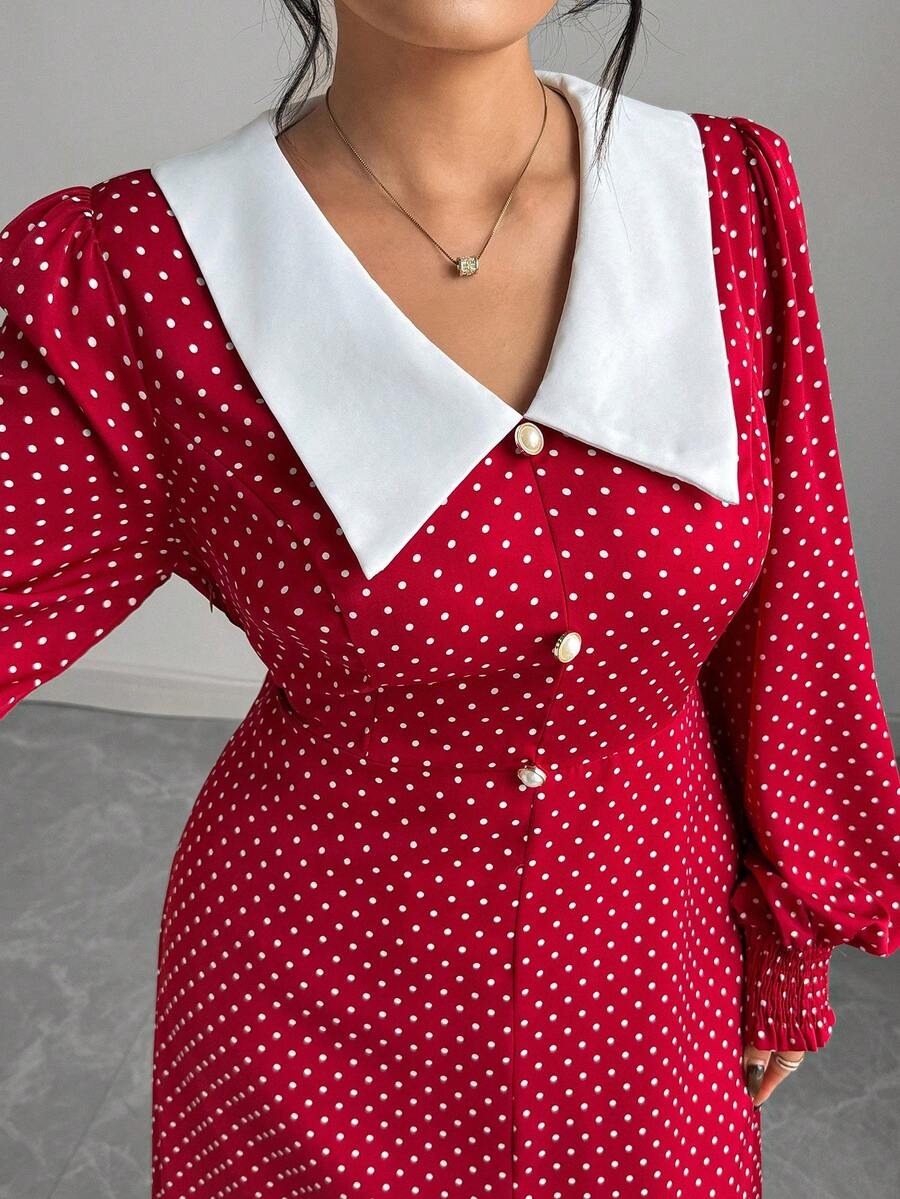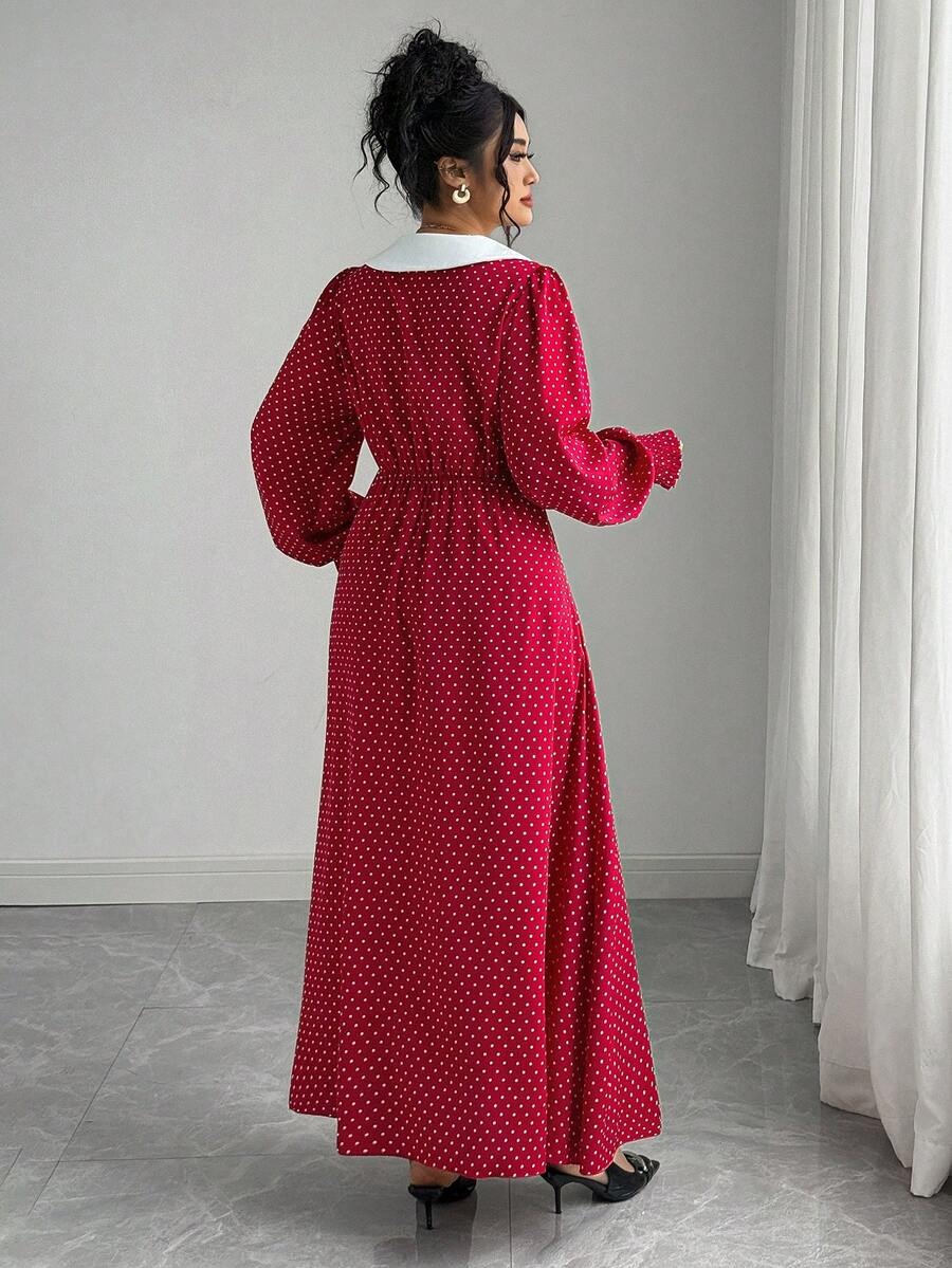 Rochie Lunga Segot Rosie cu Buline Albe – Marimi Mari
