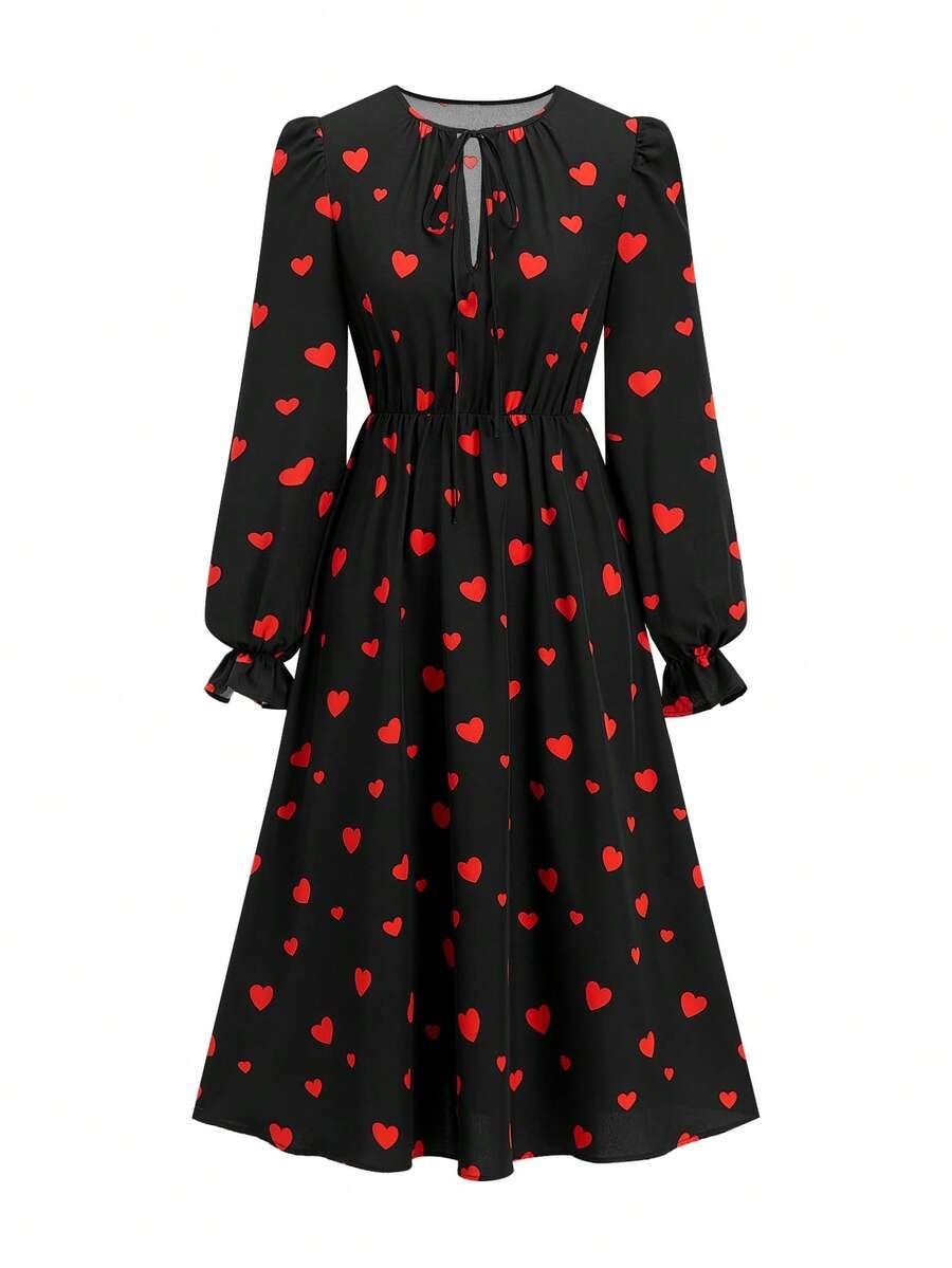 Rochie Midi Adalina Neagra cu Inimi Rosii