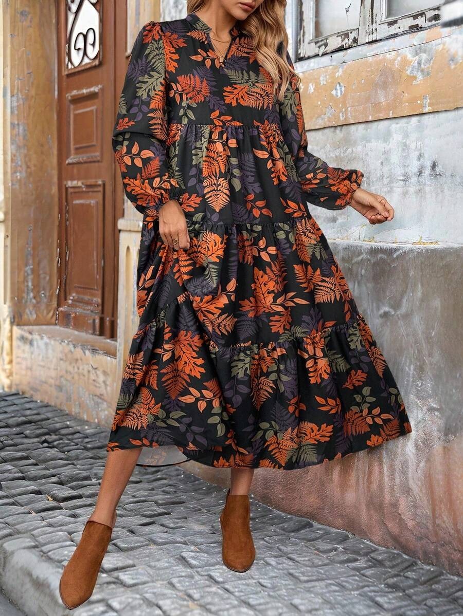 Rochie Midi Adela Neagra cu Frunze Caramizii