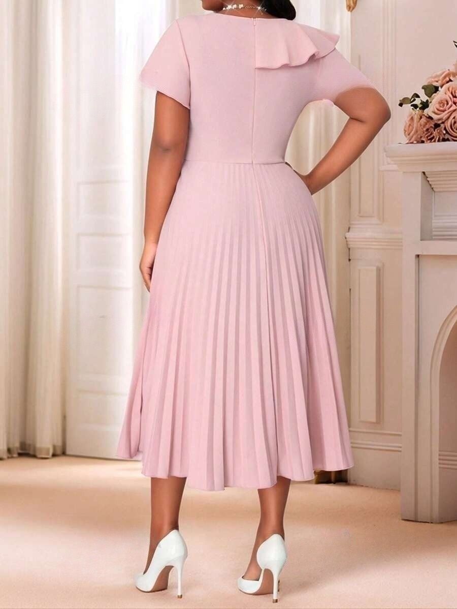 Rochie Midi Adelaide Roz Plisata – Marimi Mari
