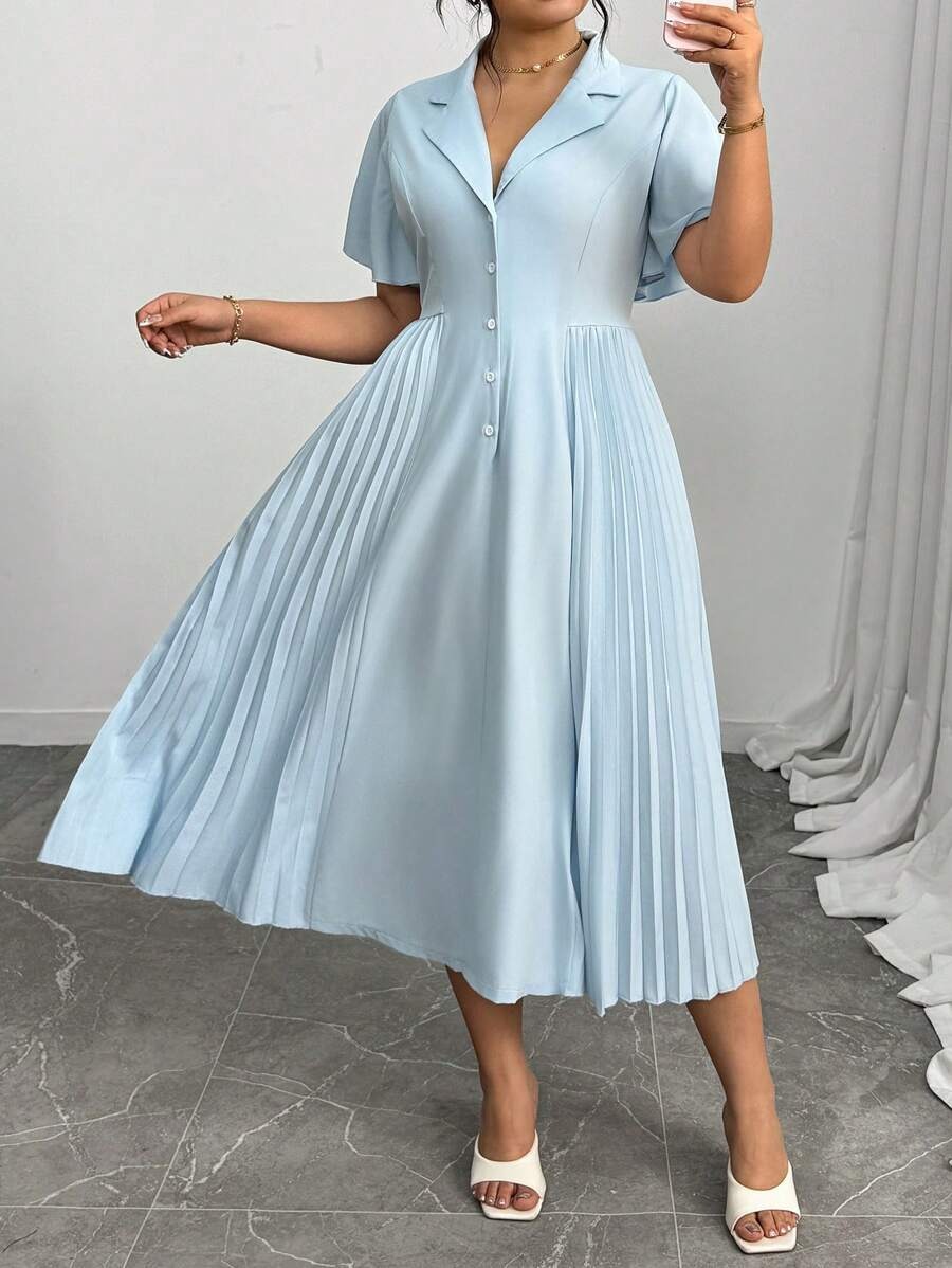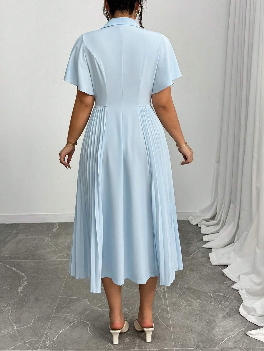 Rochie Midi Amalia Bleu Plisata – Marimi Mari