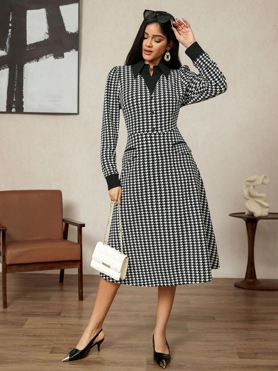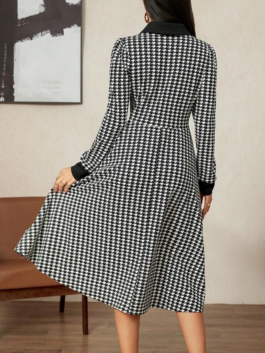 Rochie Midi Apryll Neagra cu Print Geometric Alb – Marimi Mari